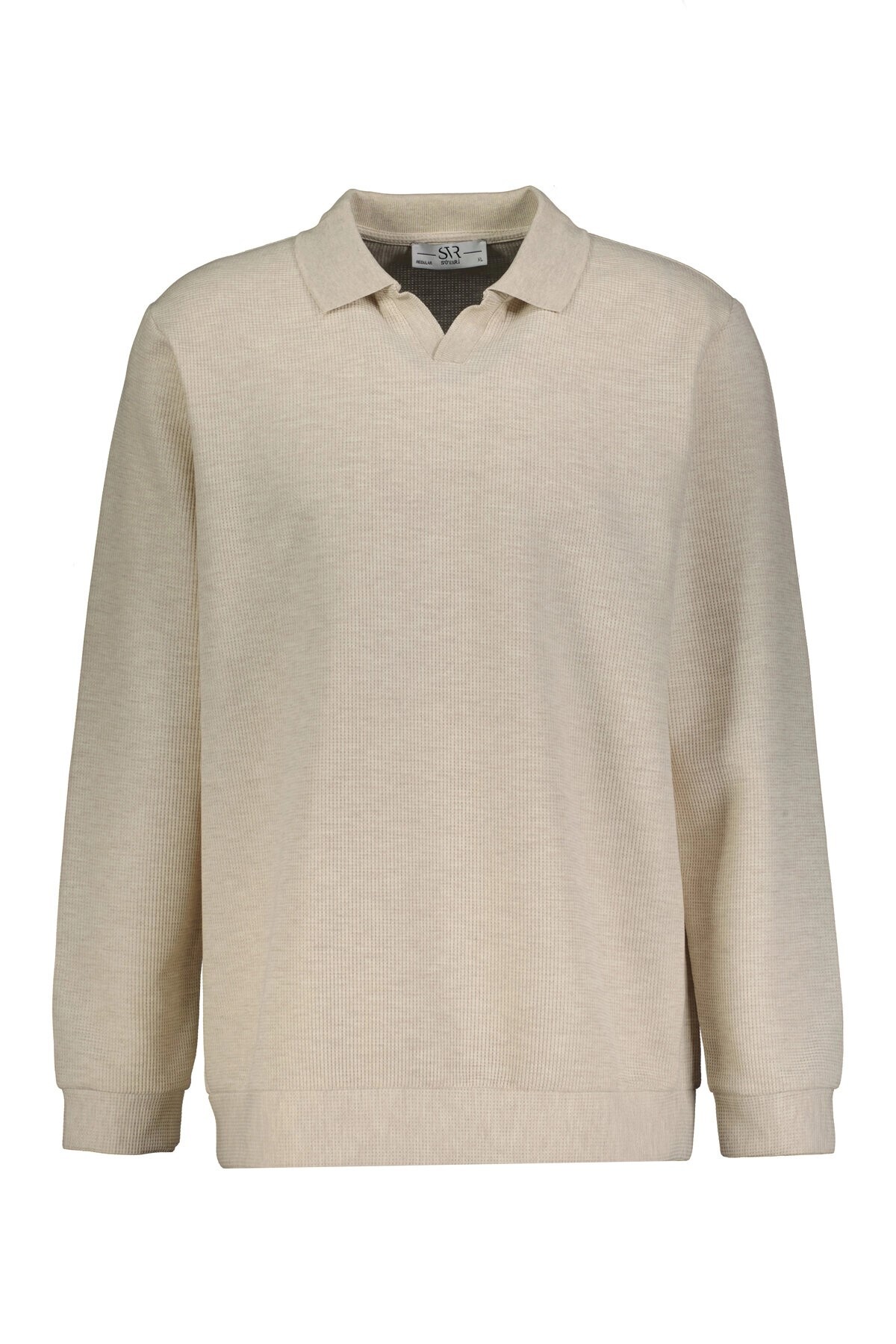 SÜVARİ Regular Fit Polo Neck V-Patch Buttonless Dobby Beige Sweatshirt