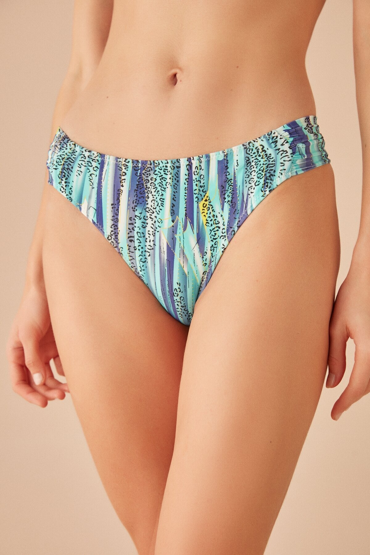Suwen Side Pleated Patterned Bikini Bottom