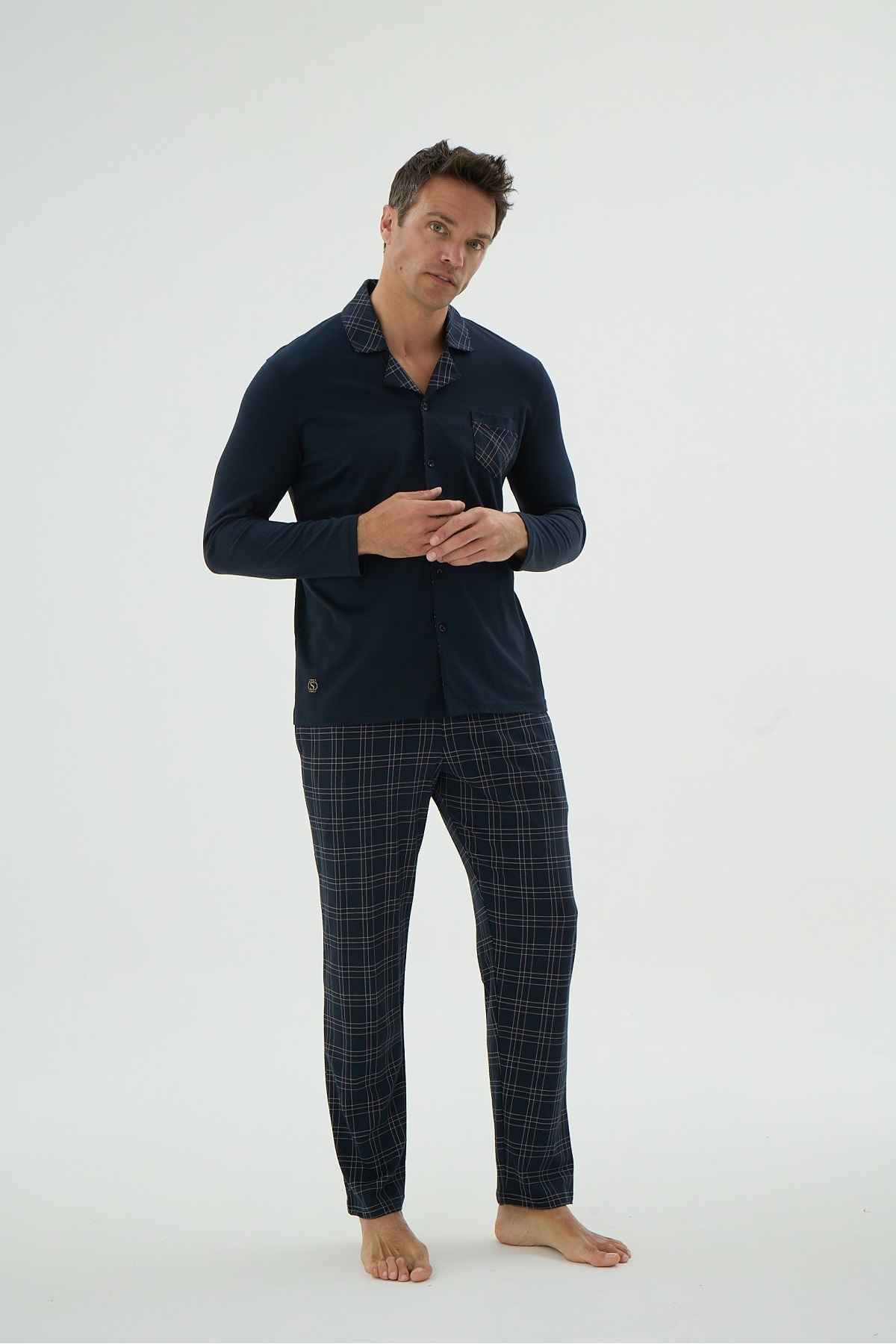 Svm 9622 Men's Printed Buttoned Pajama Set features
