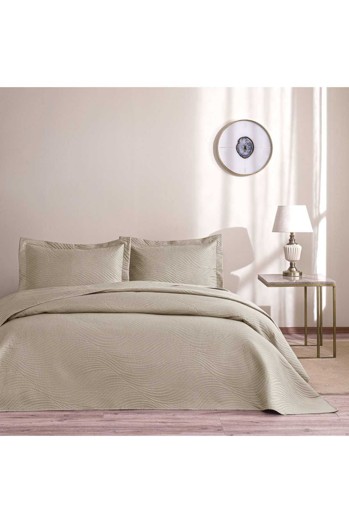 Taç Harlow Double Bedspread Set Stone features