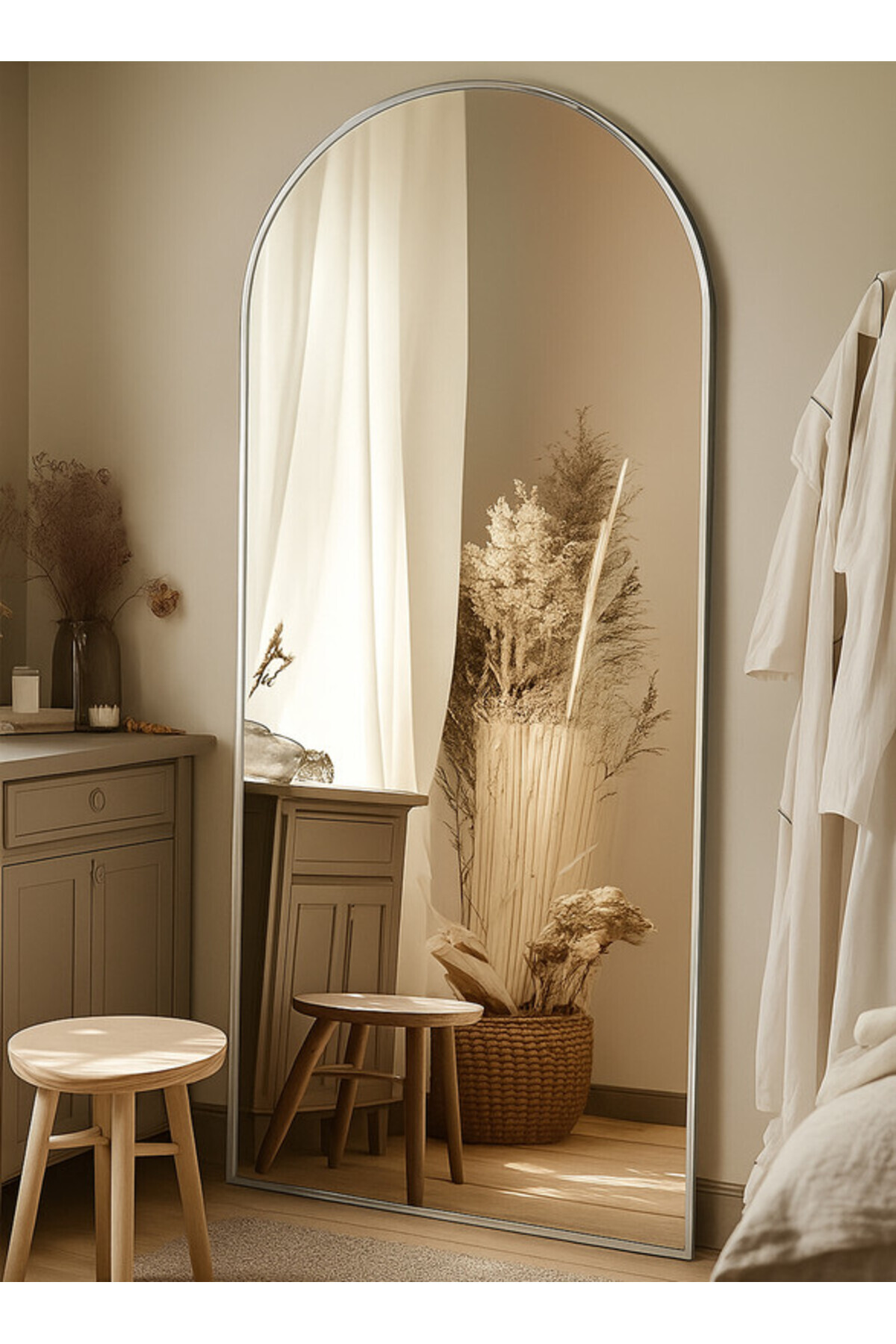 Taimi Large Mirror With Elegant Design150x50cm-full Length Mirror With Silver Metal Frame And Back Stand features