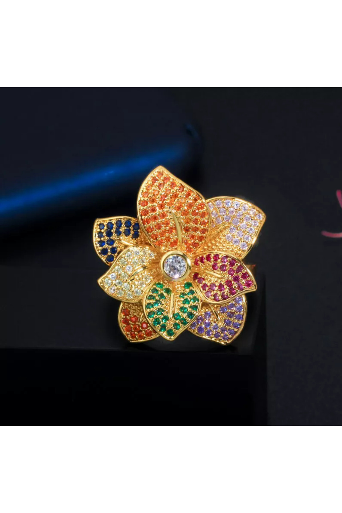 TAKİŞKO Adjustable Flower Model Colored Stone Ring features