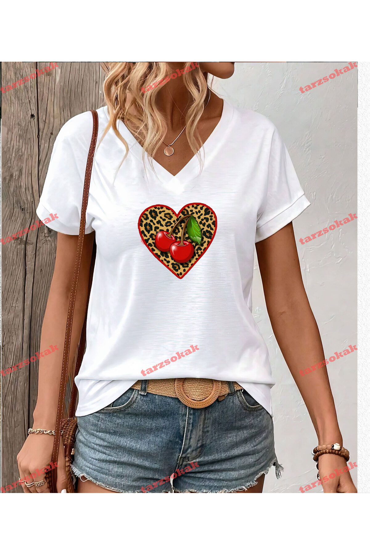 Tarzsokak Leopard Patterned Chery Heart