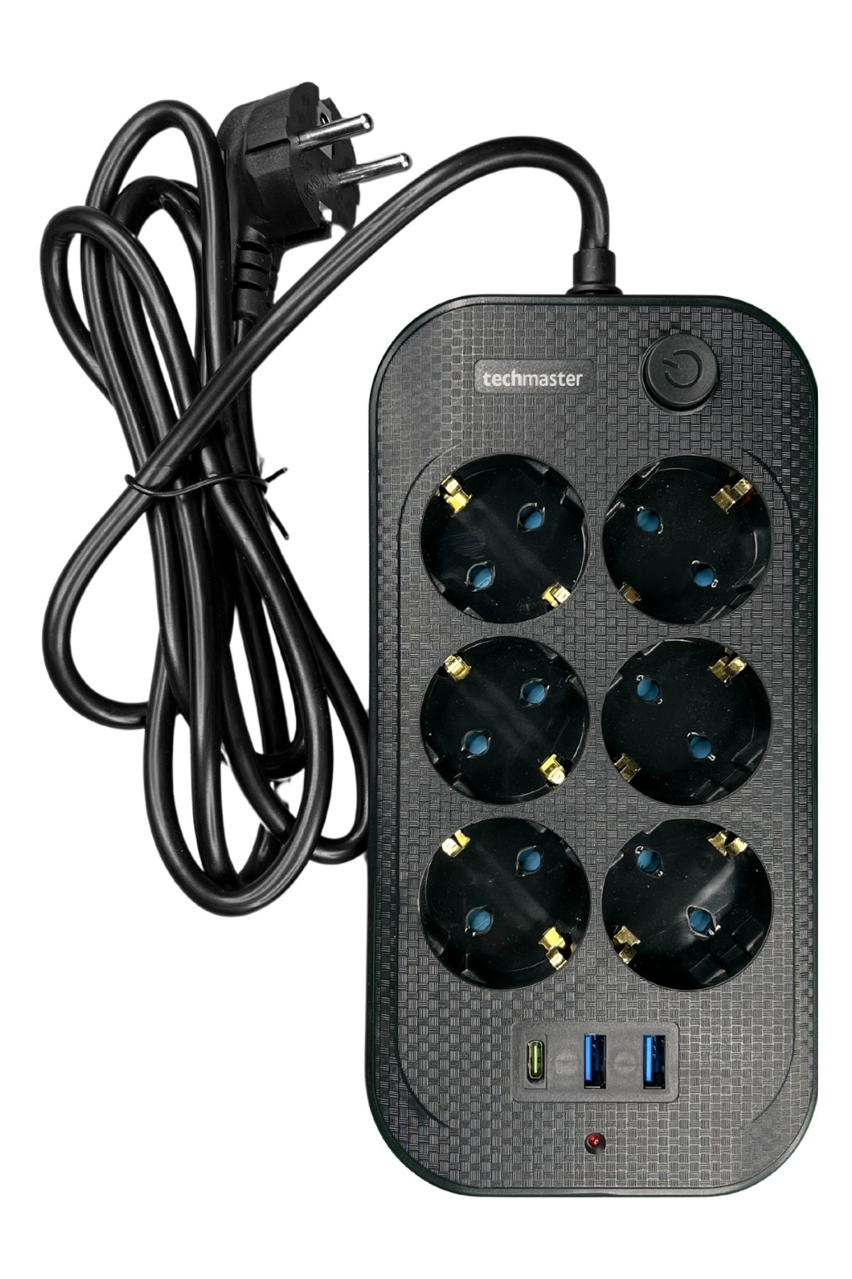 Techmaster 2 USB + Type-C Current and Child-Proof 6-Port Socket 5m