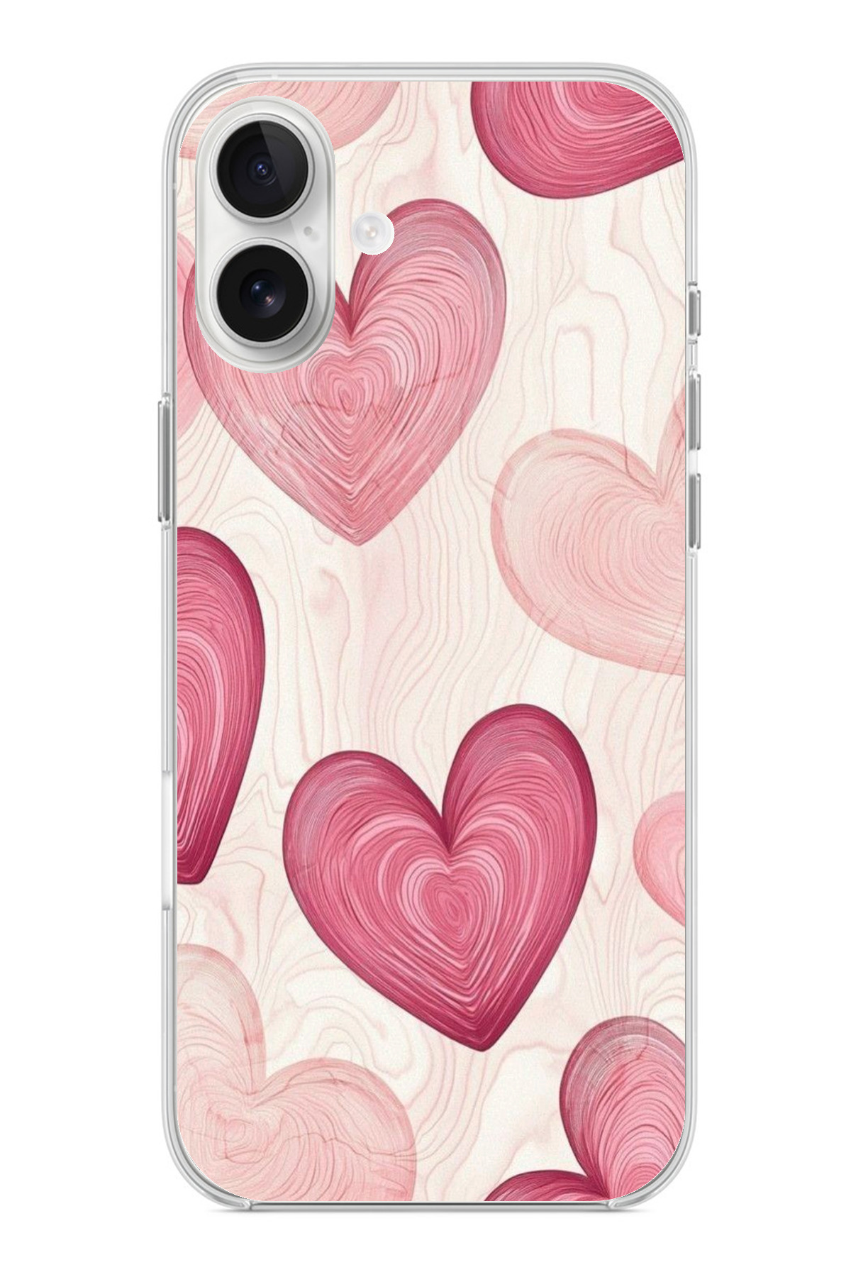 TechTree iPhone 16 Plus Compatible Linear Pink Heart Printed Silicone Case