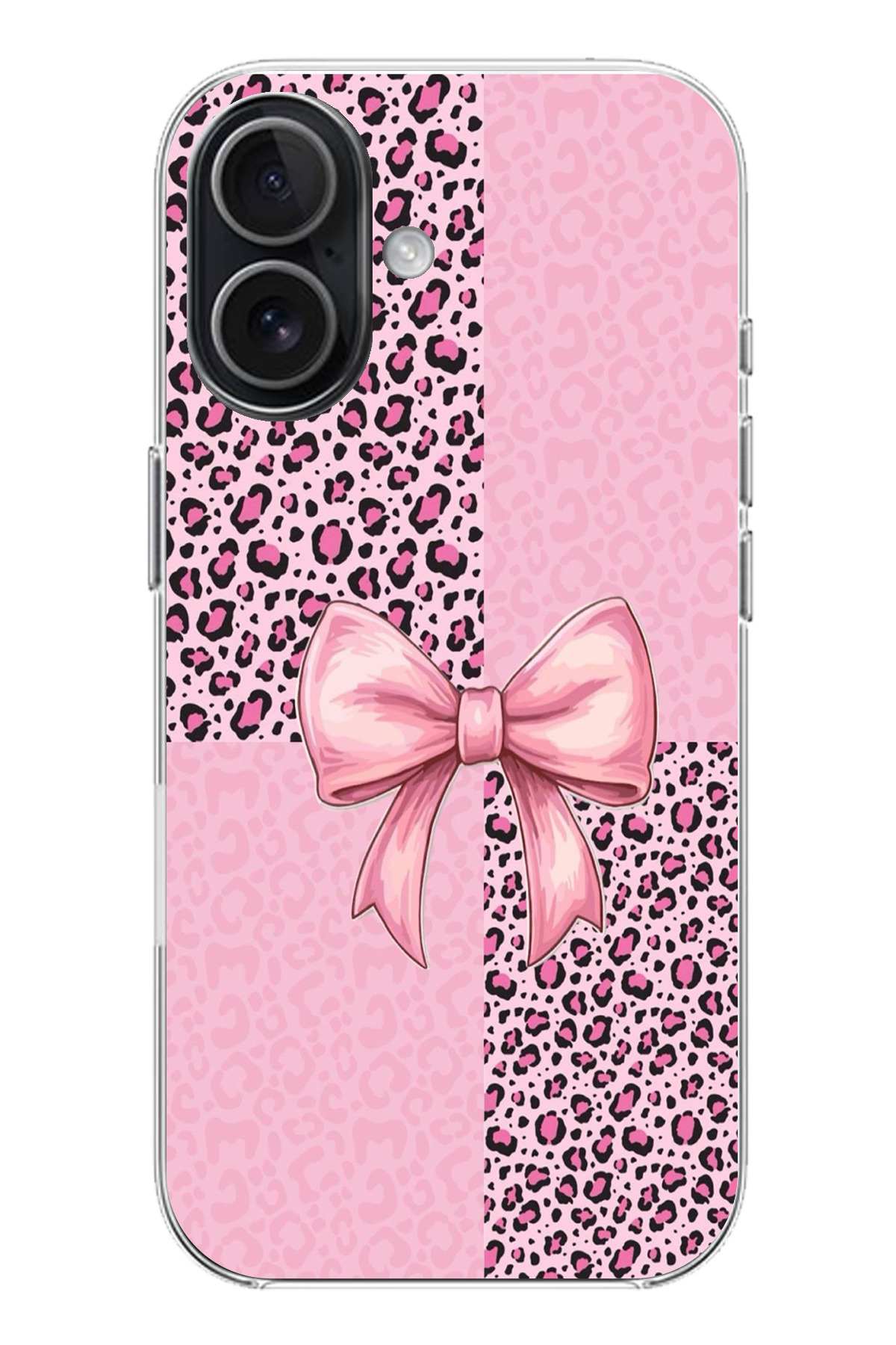 TechTree iPhone 17 Compatible Pink Leopard Pattern and Ribbon Printed Silicone Case