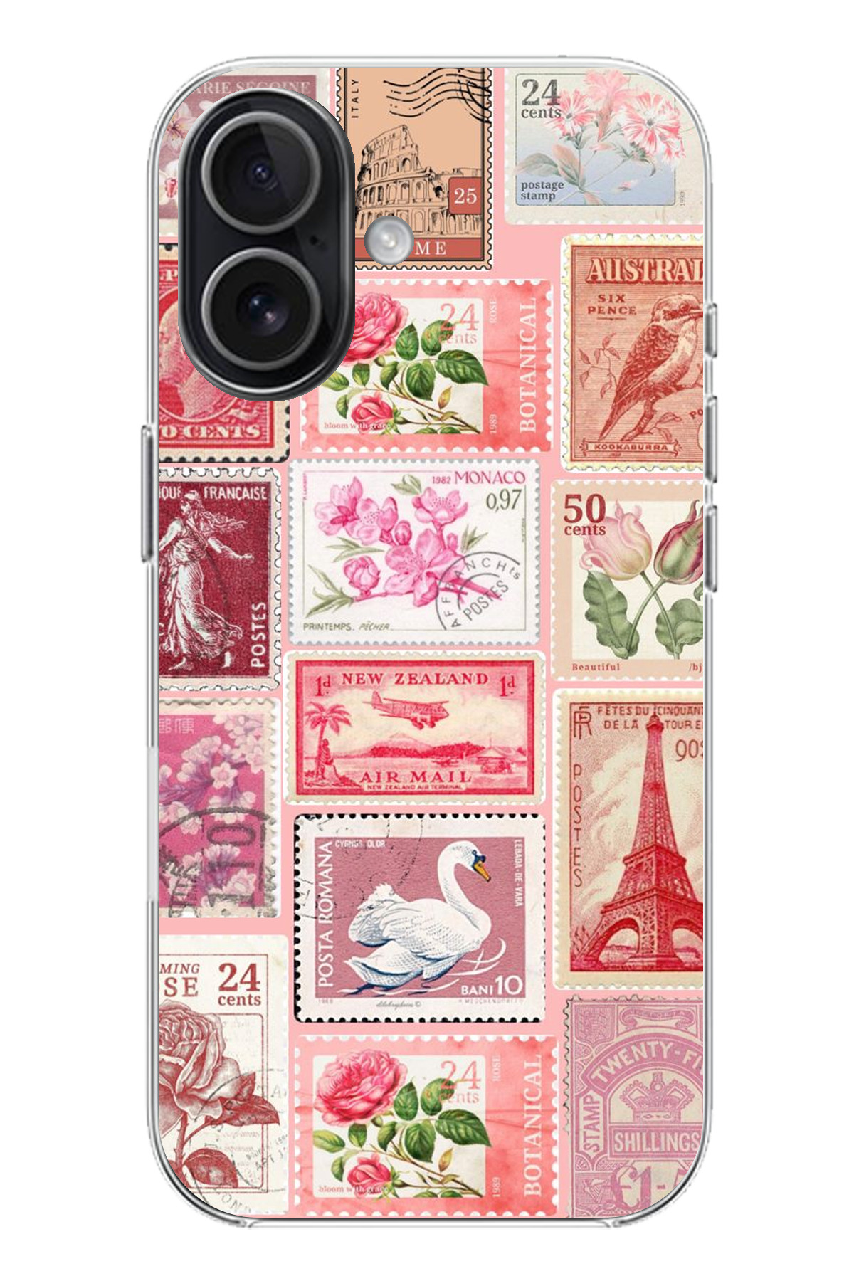 TechTree iPhone 17 Compatible Pink Postage Stamps Printed Silicone Case