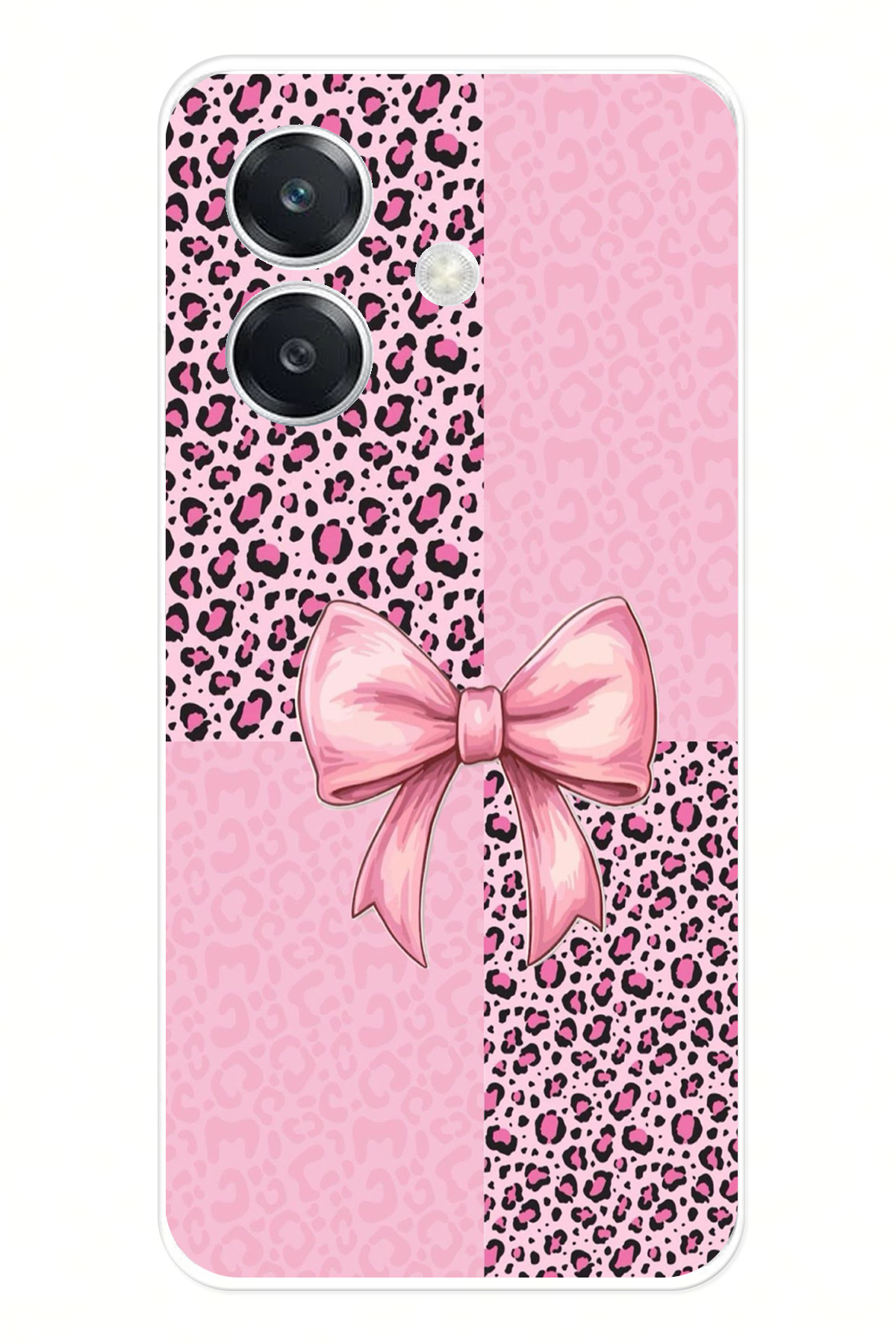 TechTree Oppo A3 Compatible Pink Leopard Pattern and Ribbon Printed Silicone Case