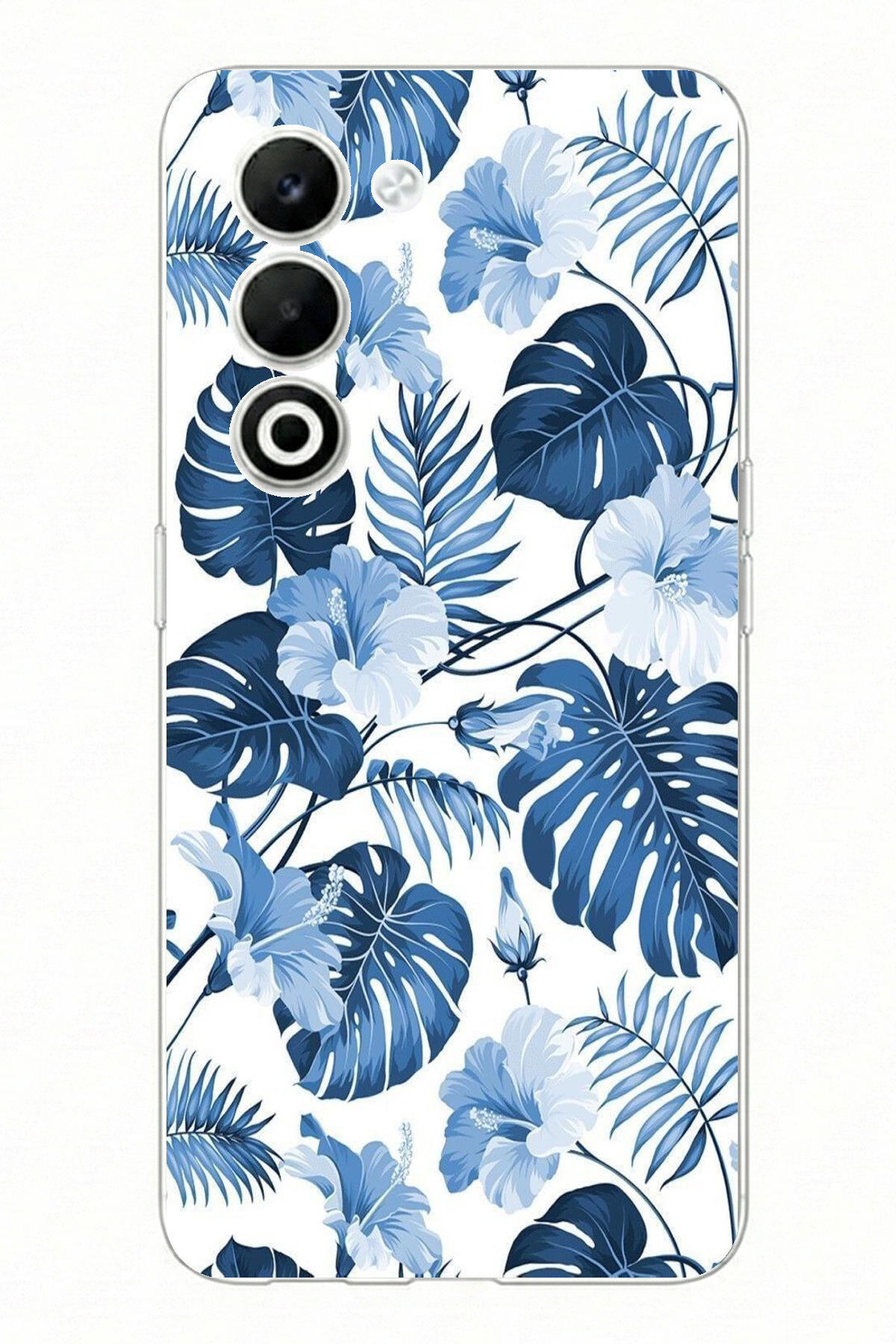 TechTree Oppo A5 4g Compatible Blue Leaf and Flower Pattern Printed Silicone Case features