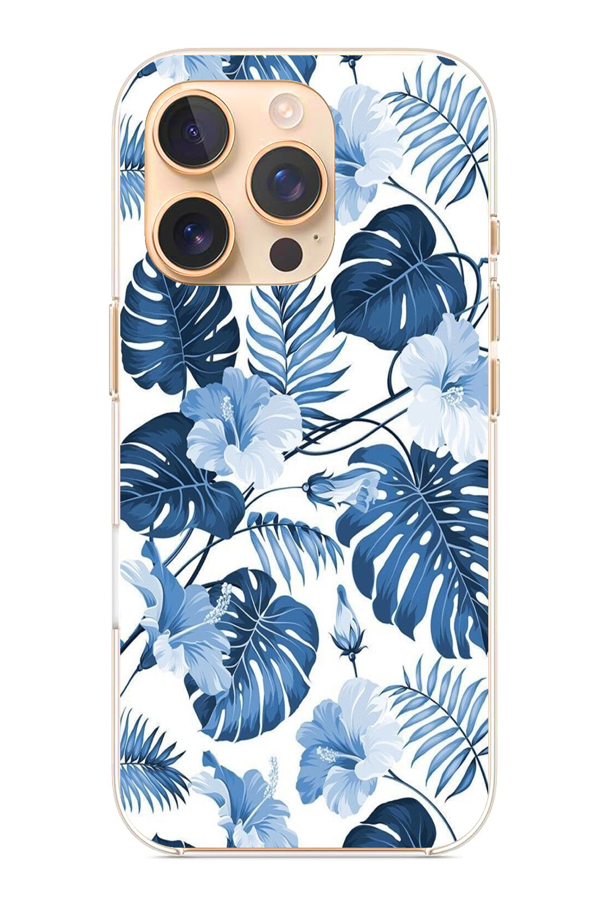 TechTree Printed Silicone Case Compatible with iPhone 16 Pro, Blue Leaf and Flower Pattern