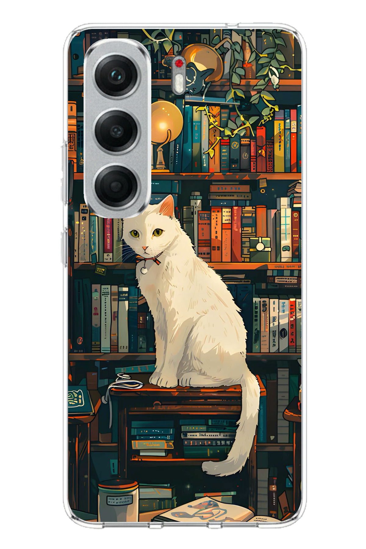 TechTree Printed Silicone Case Compatible with Tecno Camon 40 Pro 5g Compatible with Book Case White Cat Design