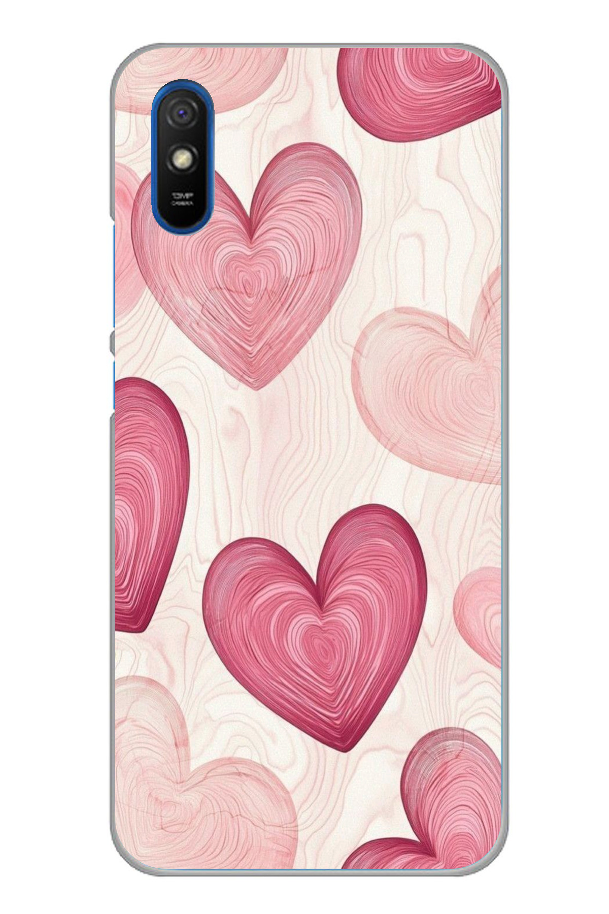 TechTree Redmi 9A Compatible Linear Pink Heart Printed Silicone Case
