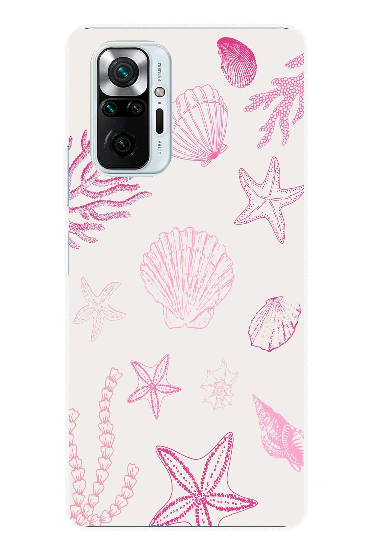 TechTree Redmi Note 10 Pro Compatible Pink Starfish and Shell Printed Silicone Case features
