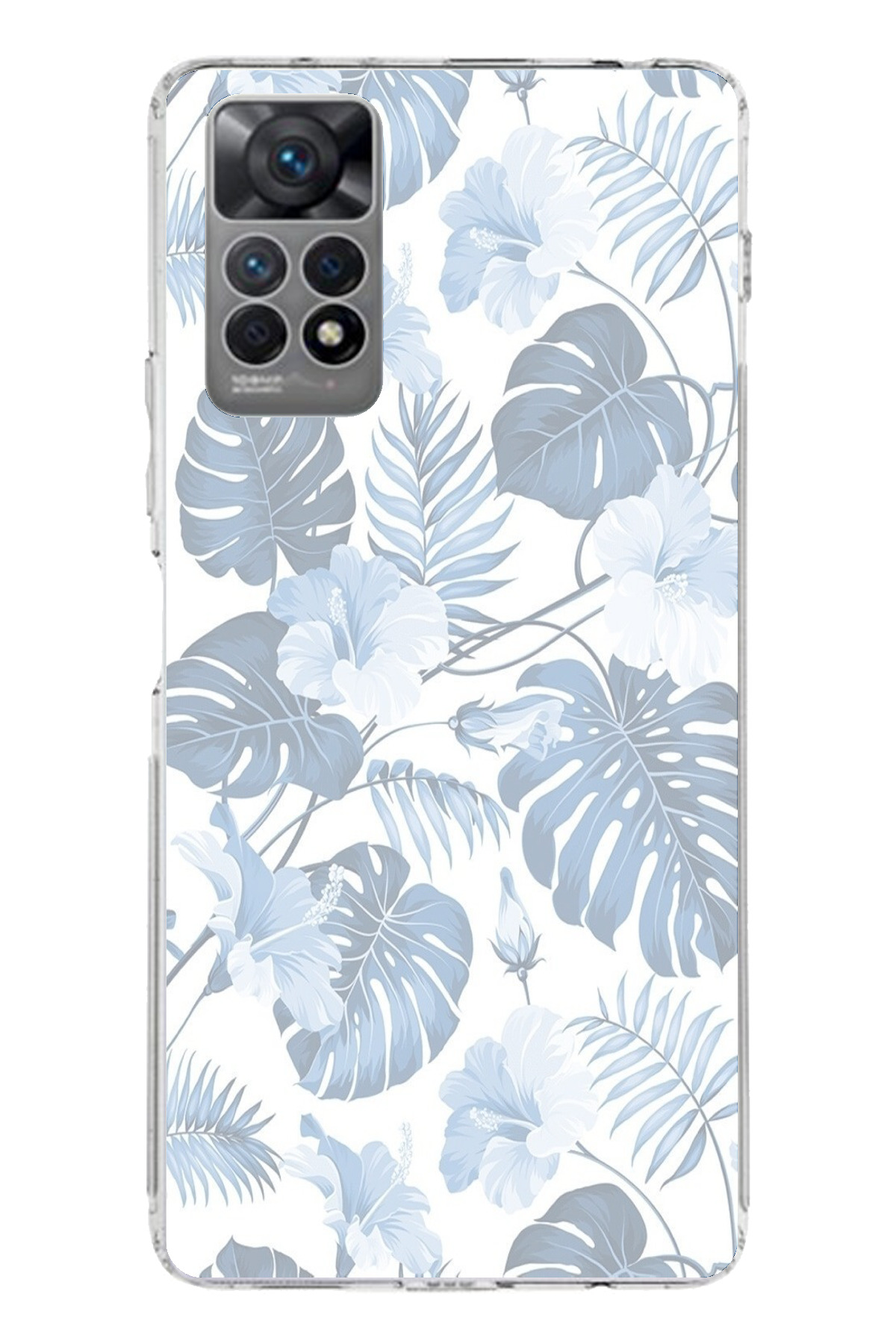 TechTree Redmi Note 12 Pro 4g Compatible Blue Leaf and Flower Patterned Printed Silicone Case features
