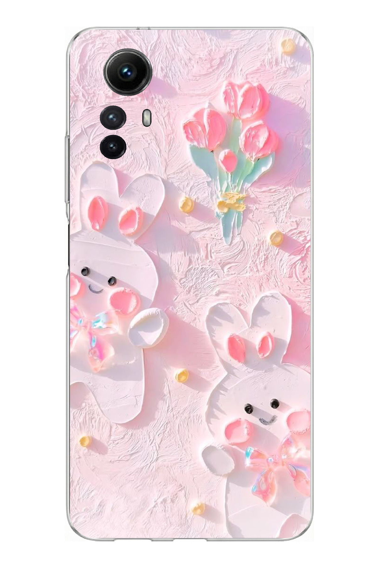 TechTree Redmi Note 12S Compatible Cute Rabbits Printed Silicone Case
