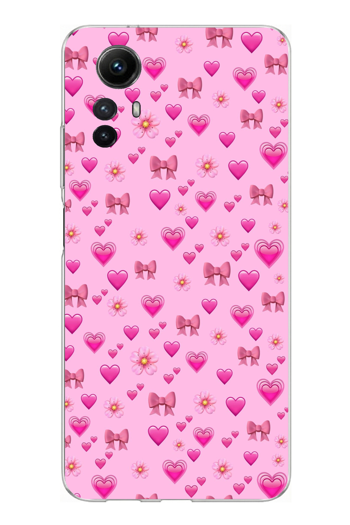 TechTree Redmi Note 12S Compatible Pink Tiny Hearts Printed Silicone Case features