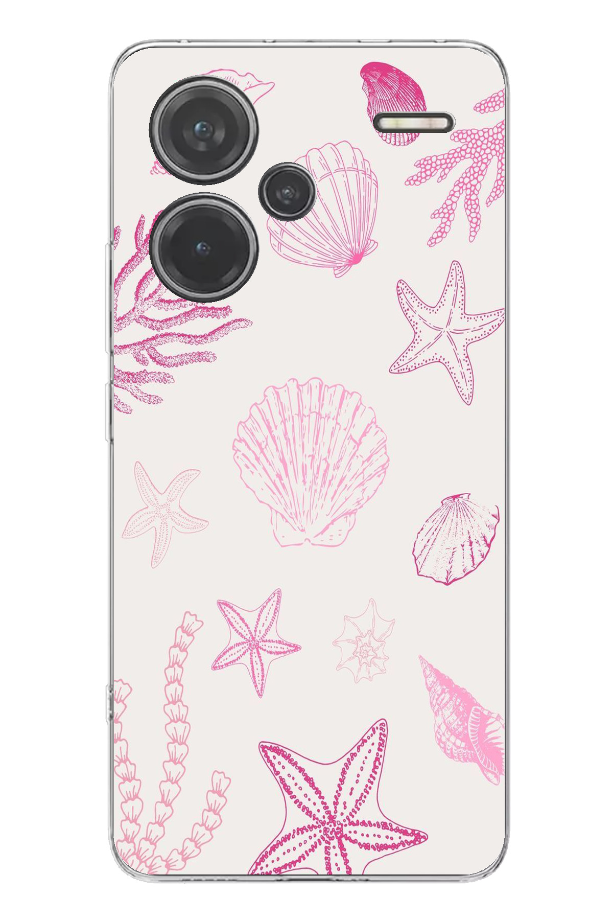 TechTree Redmi Note 13 Pro Plus Compatible Pink Starfish and Shell Printed Silicone Case