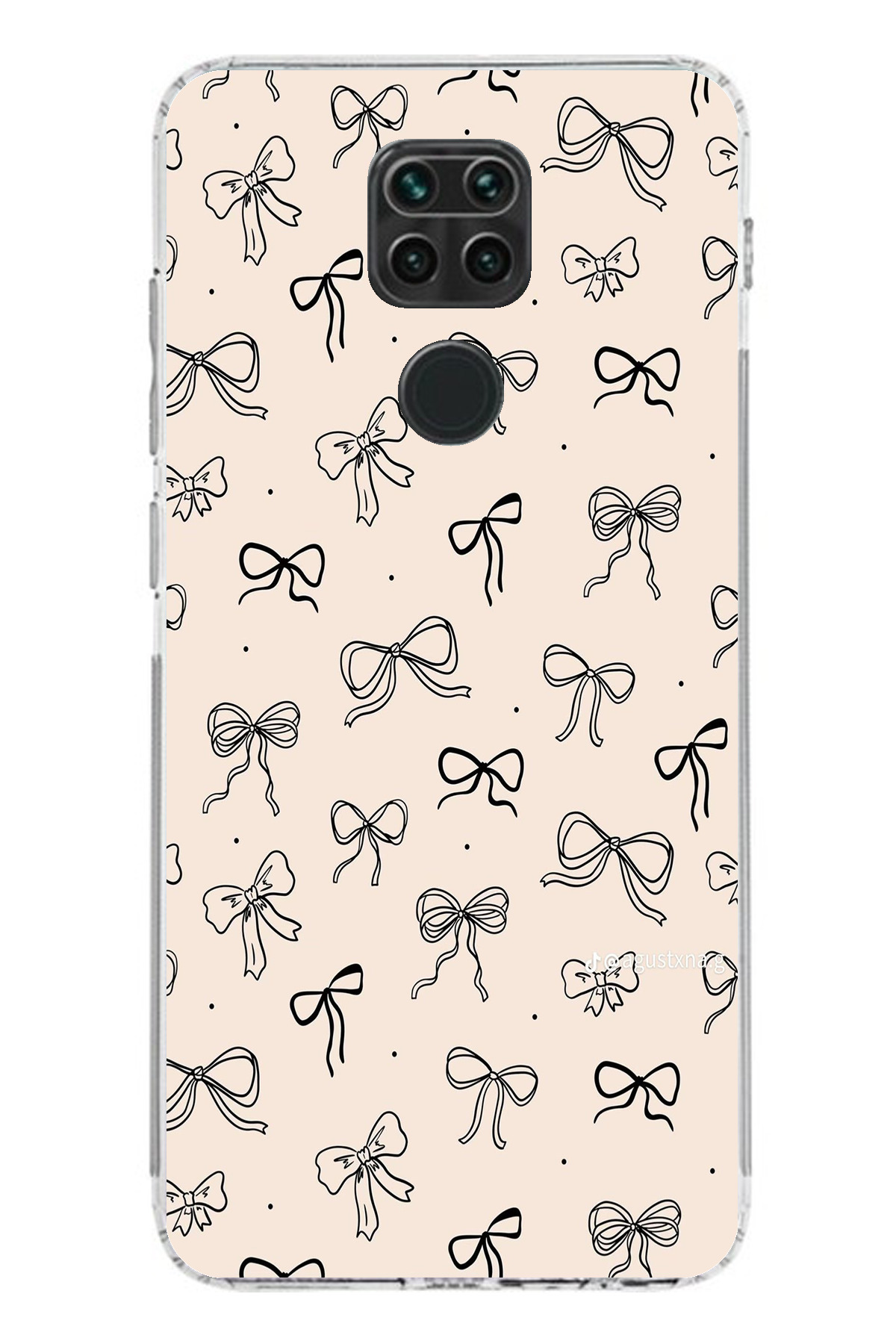 TechTree Redmi Note 9 Compatible Black Bow Patterned Cream Color Printed Silicone Case features