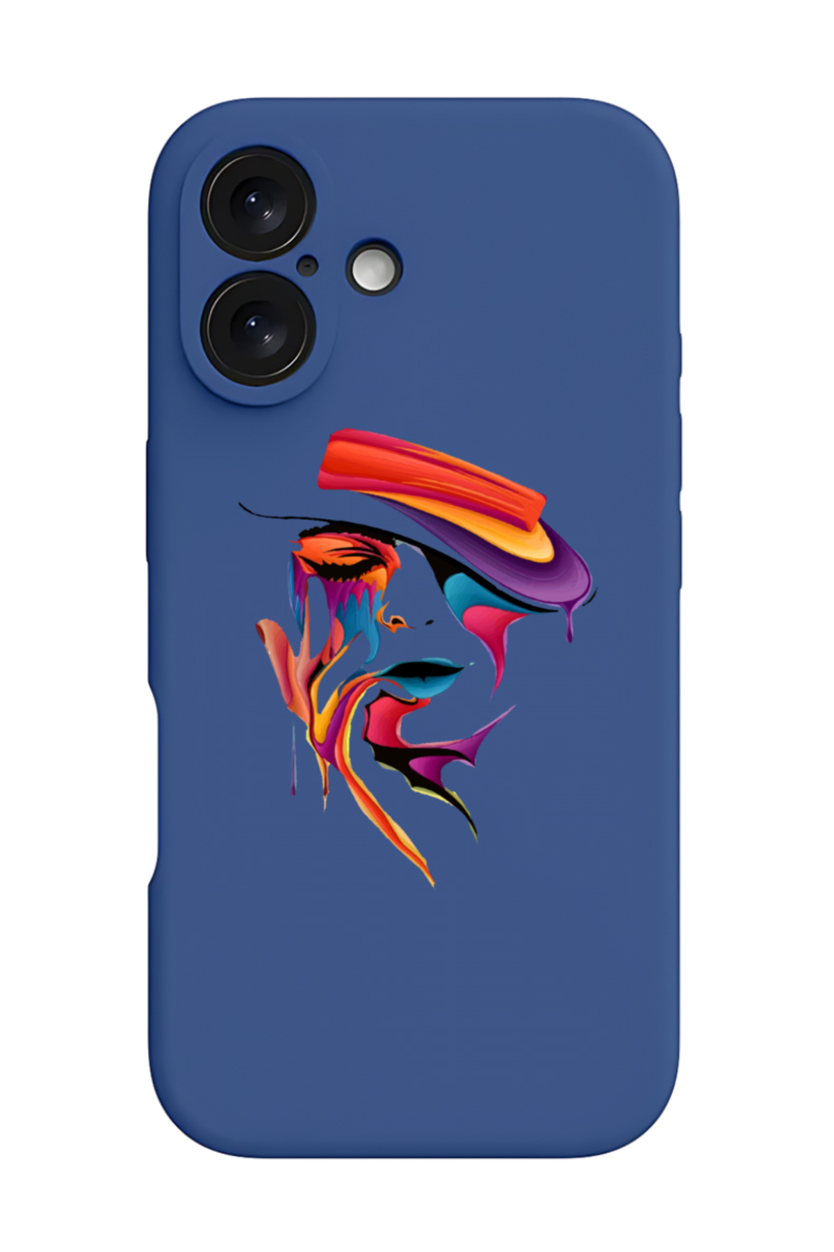 Theodor iPhone 16 Plus Blue Protective Liquid Silicone Shockproof Case - Face Paint features