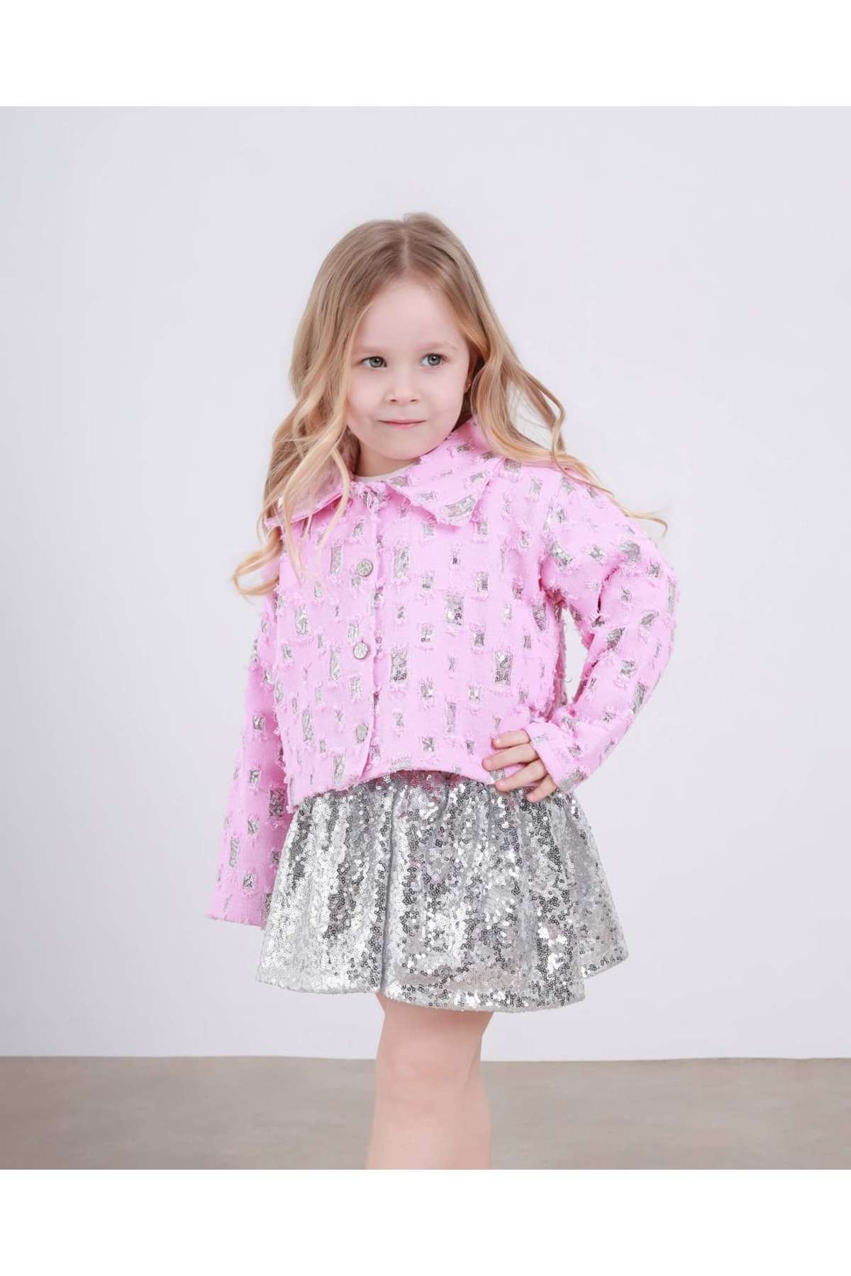 TINY BEAR Girl's Patterned Jacket Sequin Skirt Set features