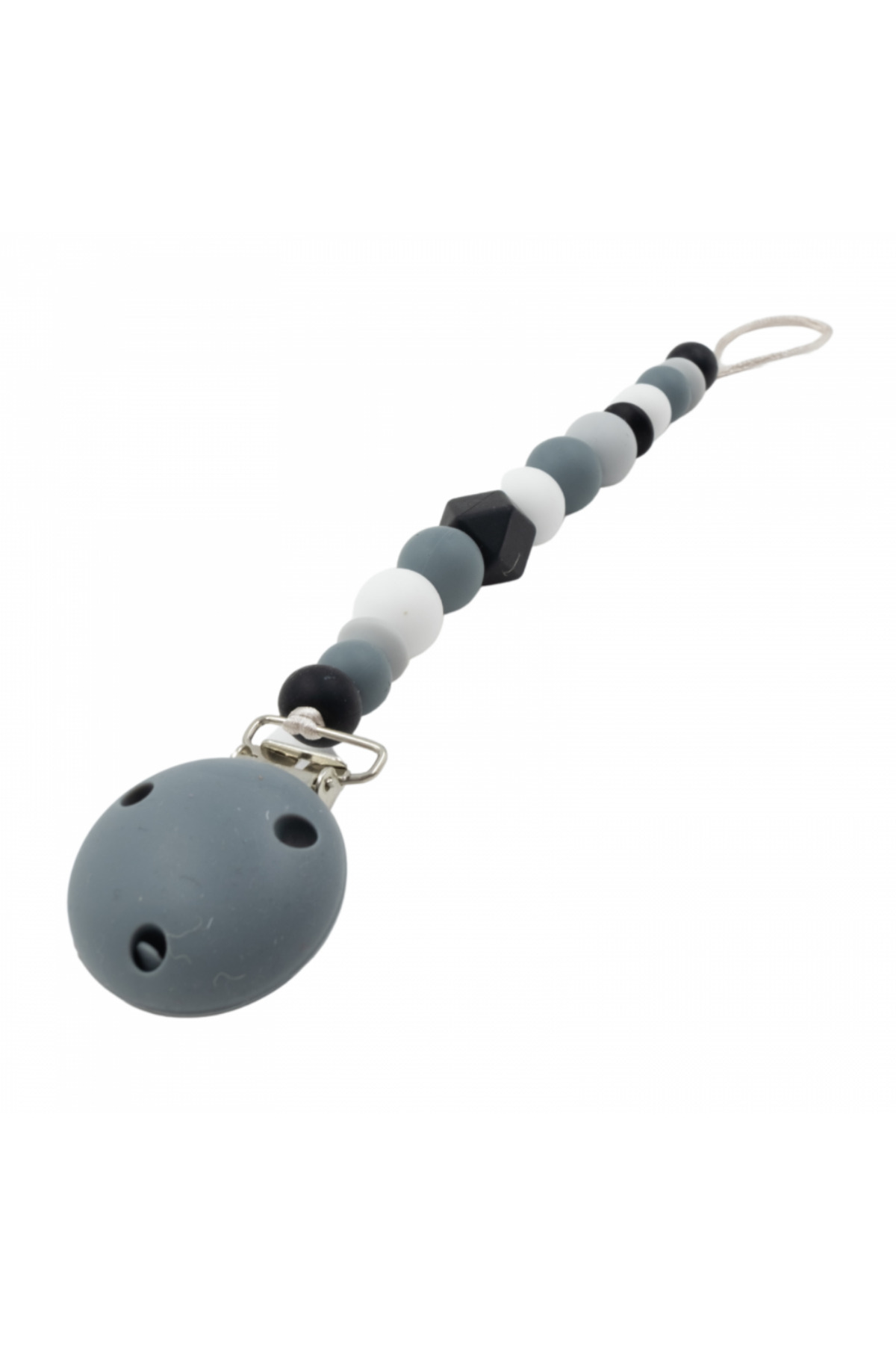 TINY WHEEL Tiny Will - White/Grey Silicone Pacifier Clip features