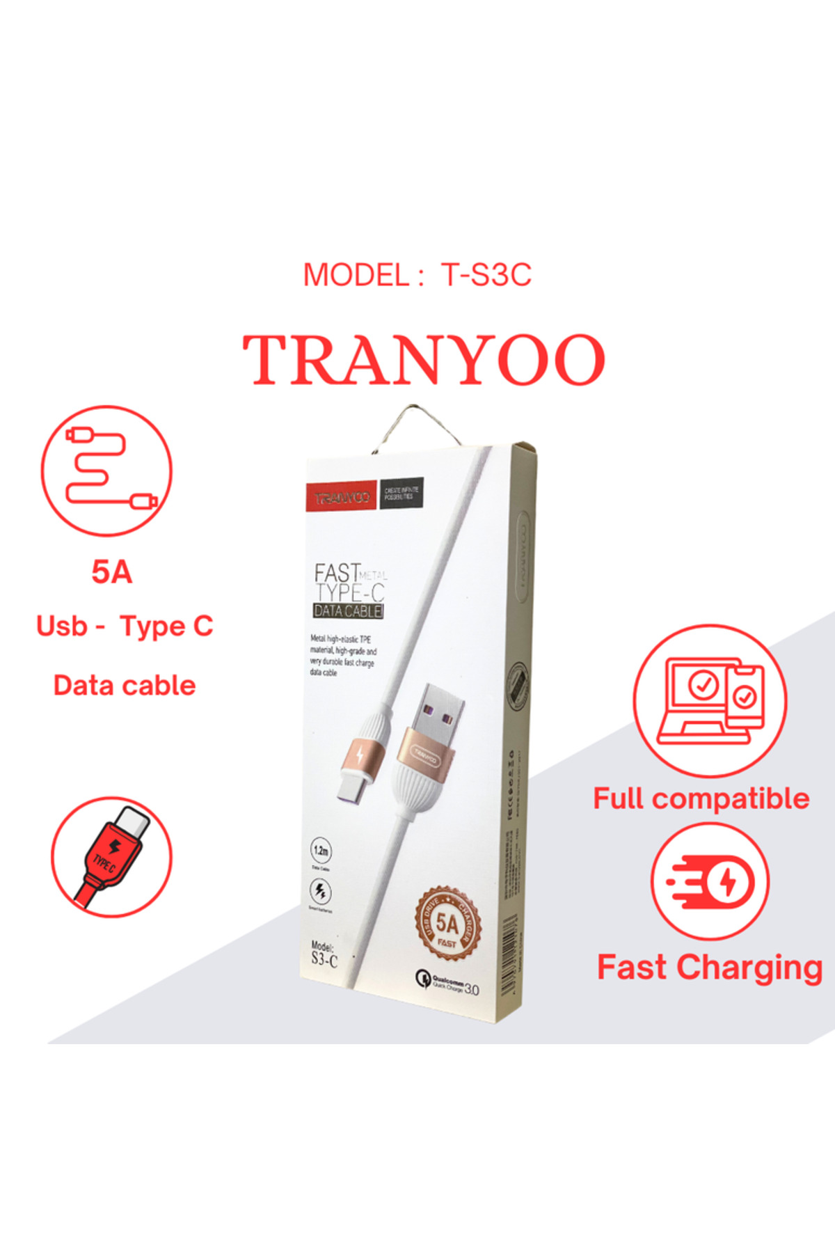TRANYOO Fast Charging Cable - USB / Type-C features