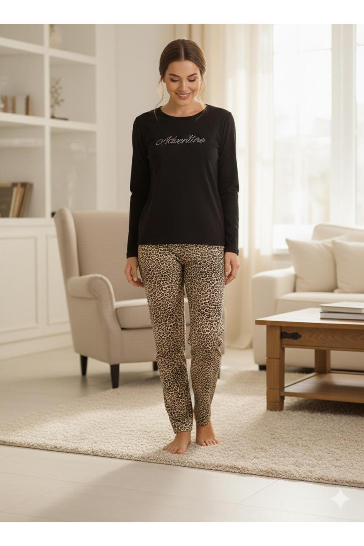 trendmodaal Milan Fabric Leopard Pattern Pajama Set