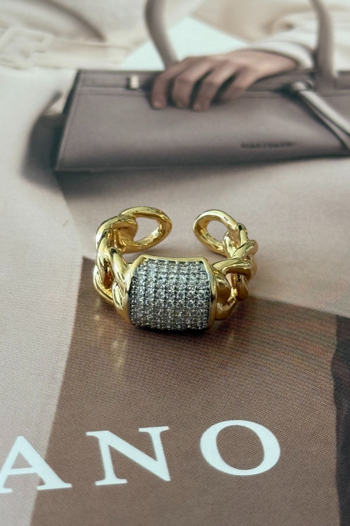 Trendy Butik Chain Model Stone Ring features