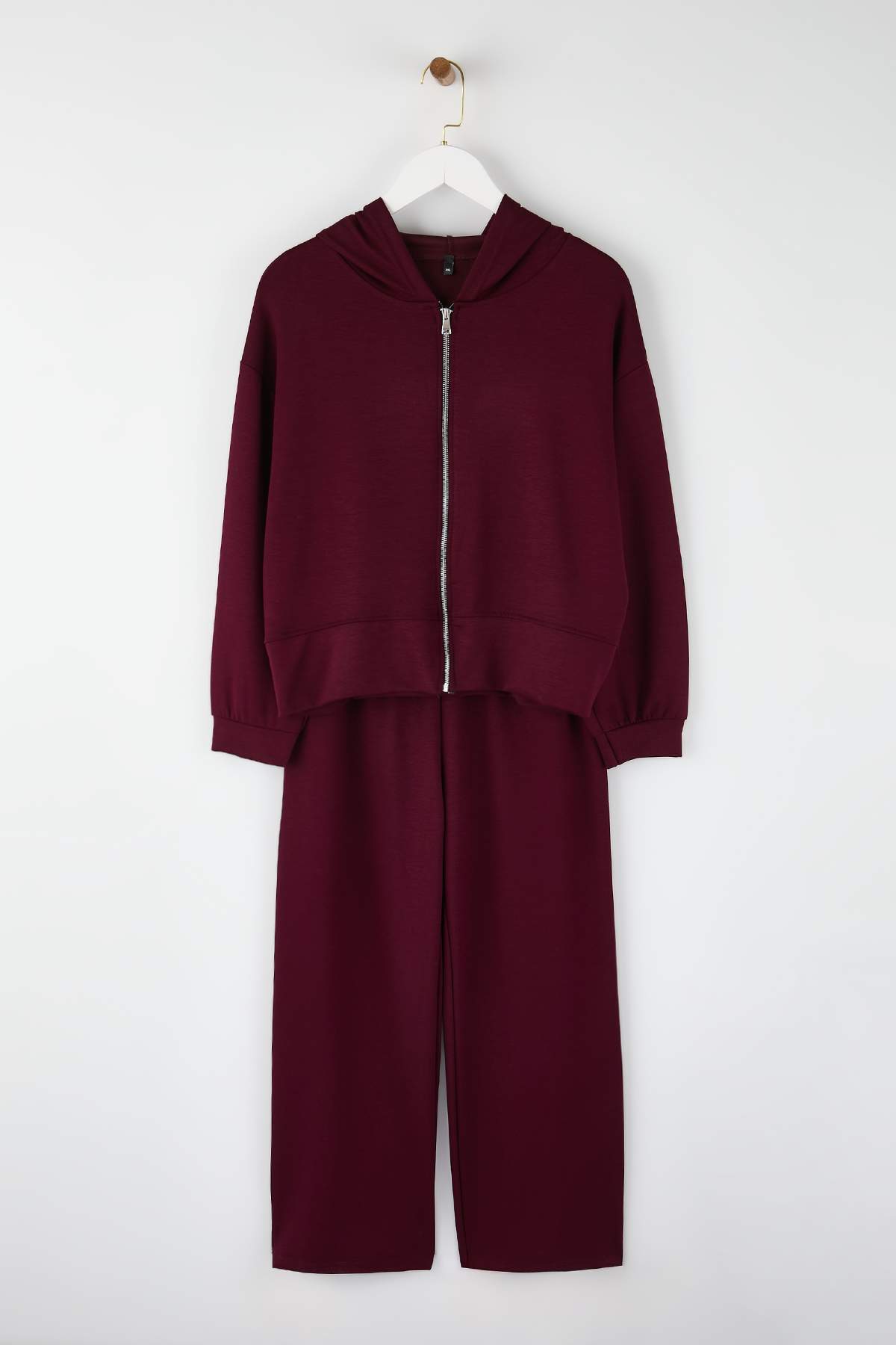 Trendyol Curve Burgundy Thin Soft Comfortable Flowy Fabric Front Zipper Plus Size Tracksuit Set Tbbaw26Ts00017