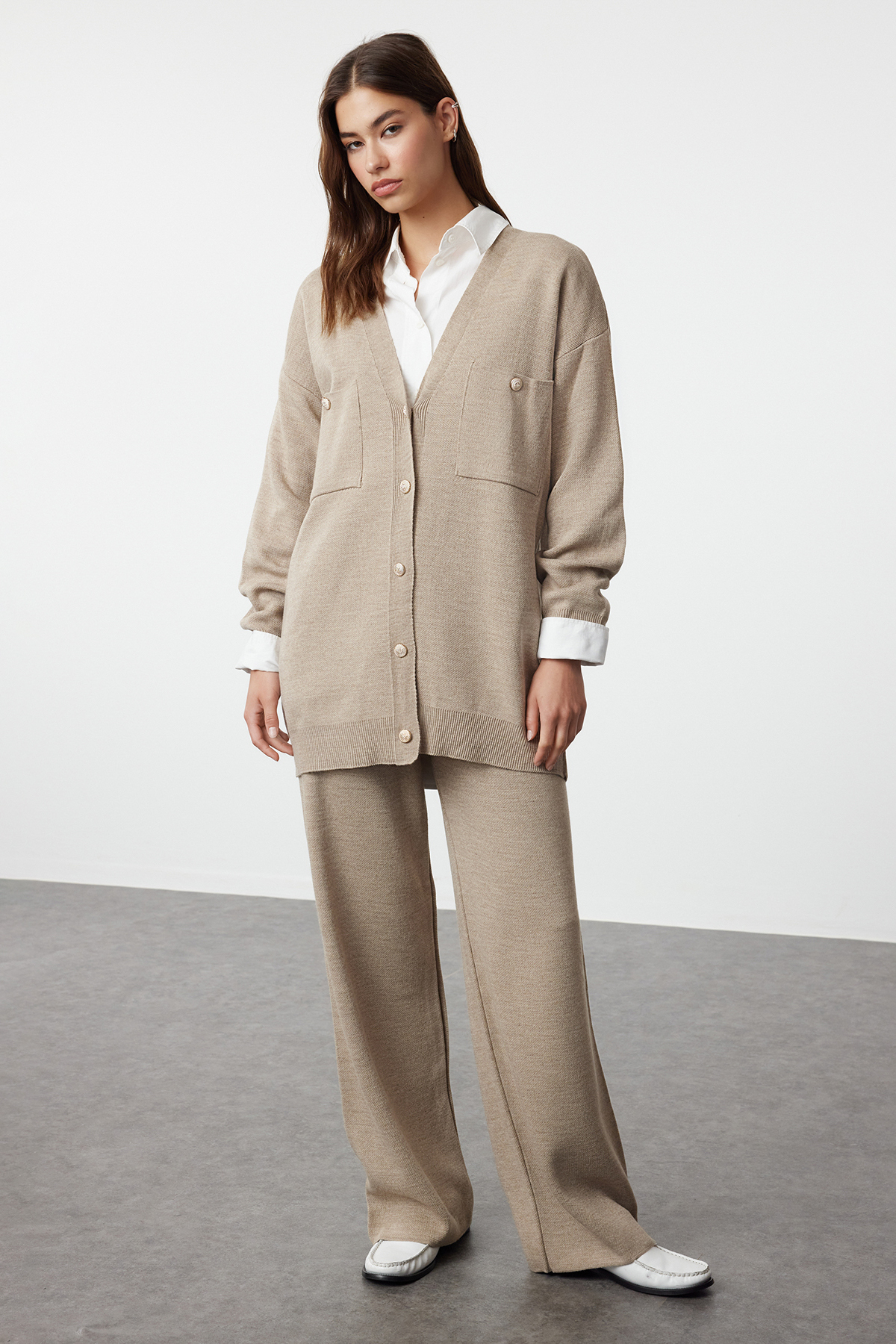 Trendyol Modest Mink Buttoned Cardigan-Pants Knitwear Top and Bottom Set TCTAW24US00048