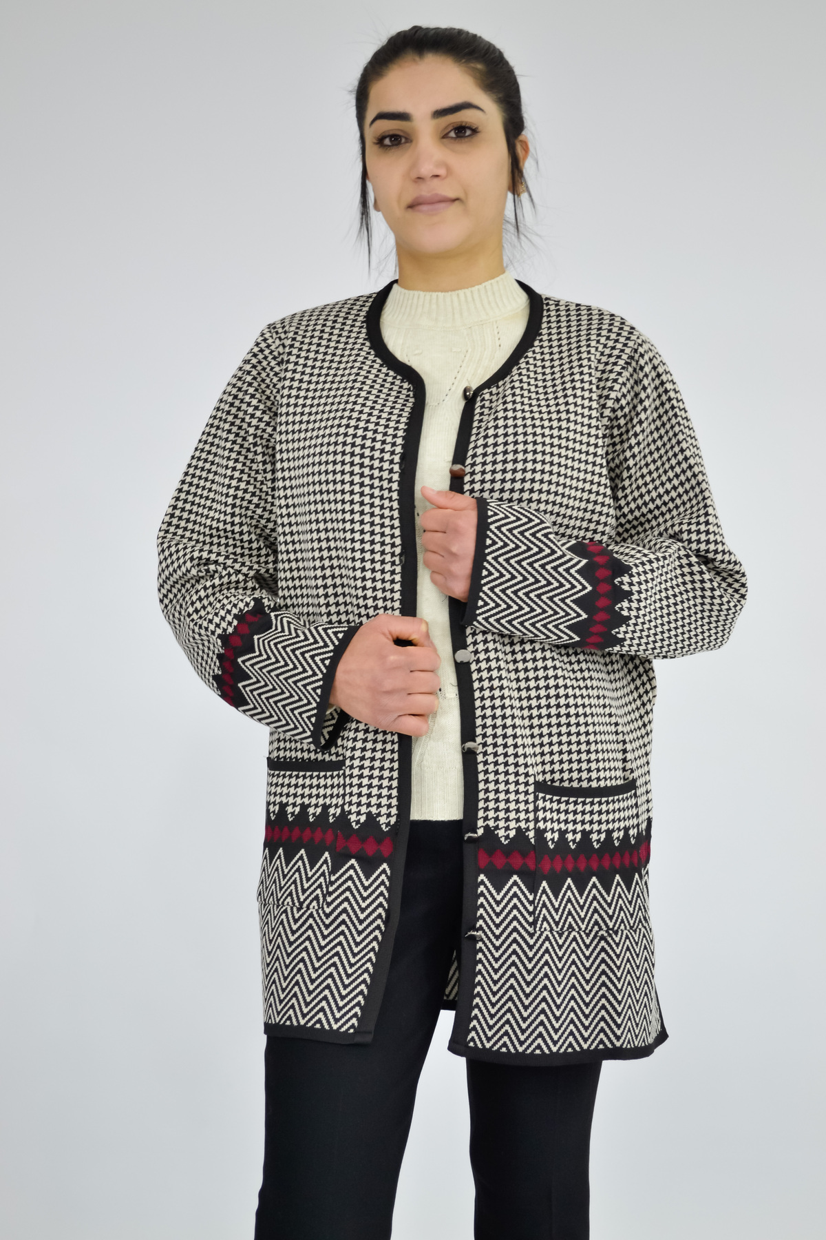 Tuğra Crew Neck Goose Feet Patterned Jacket features