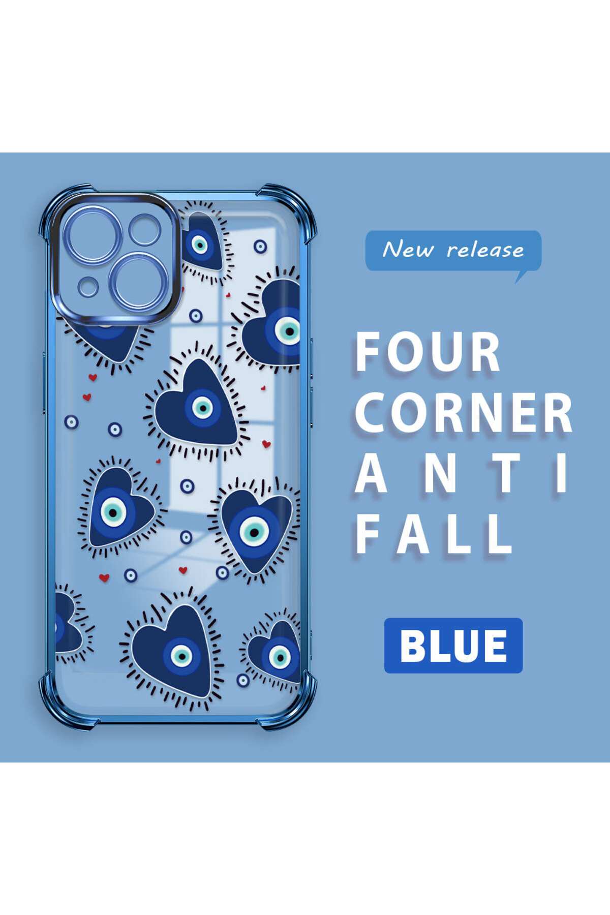 ucuc iPhone 15 Compatible Transparent Silicone Flutter Protective Case Evil Eye Pattern features