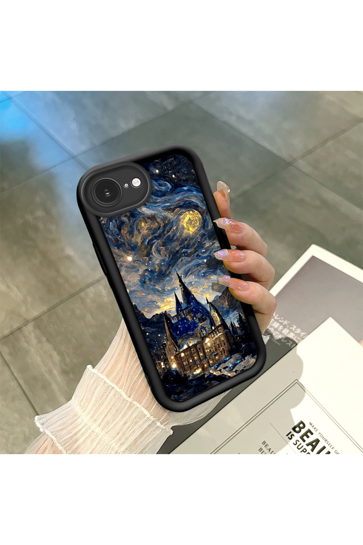 ucuc iPhone 16E Compatible Charming Sky Patterned Black Silicone Case features