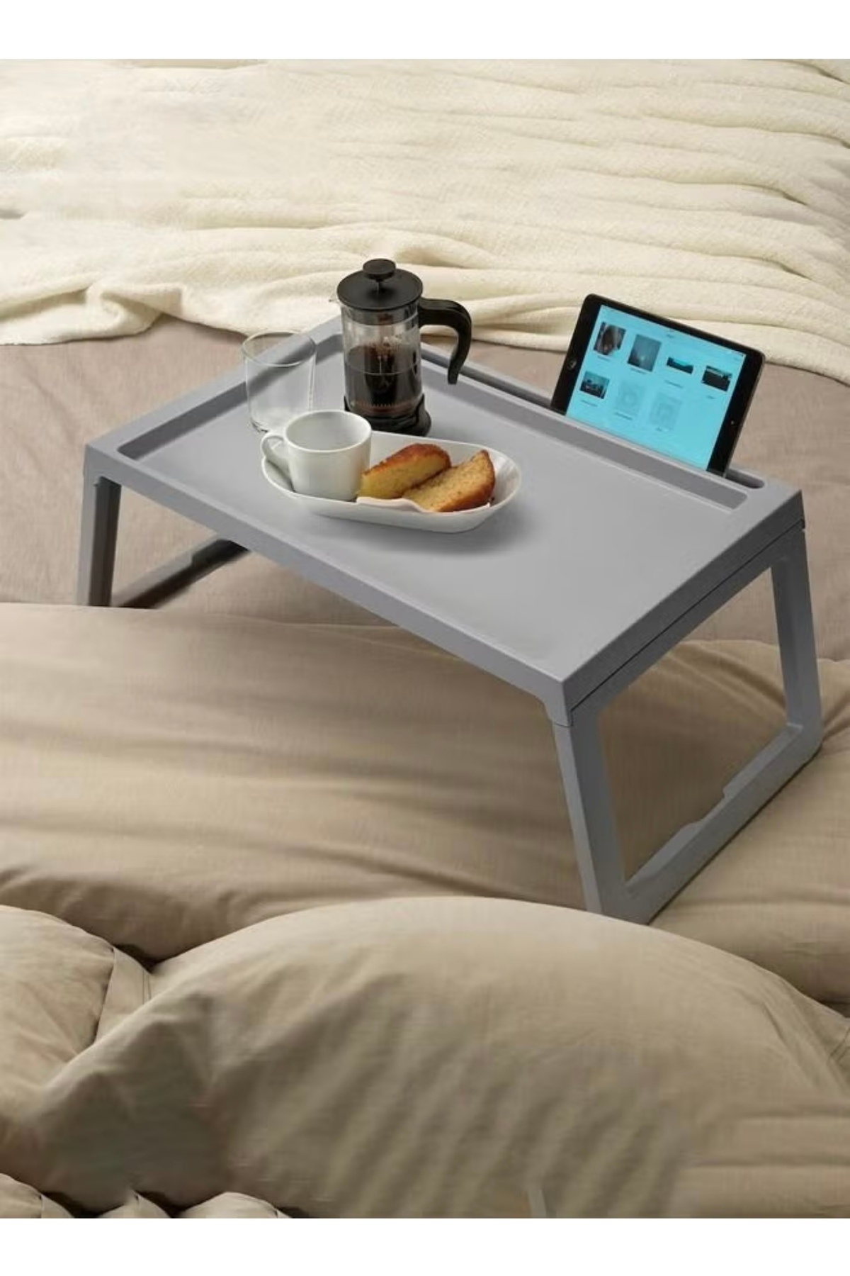 Un Multi-purpose plastic folding table features