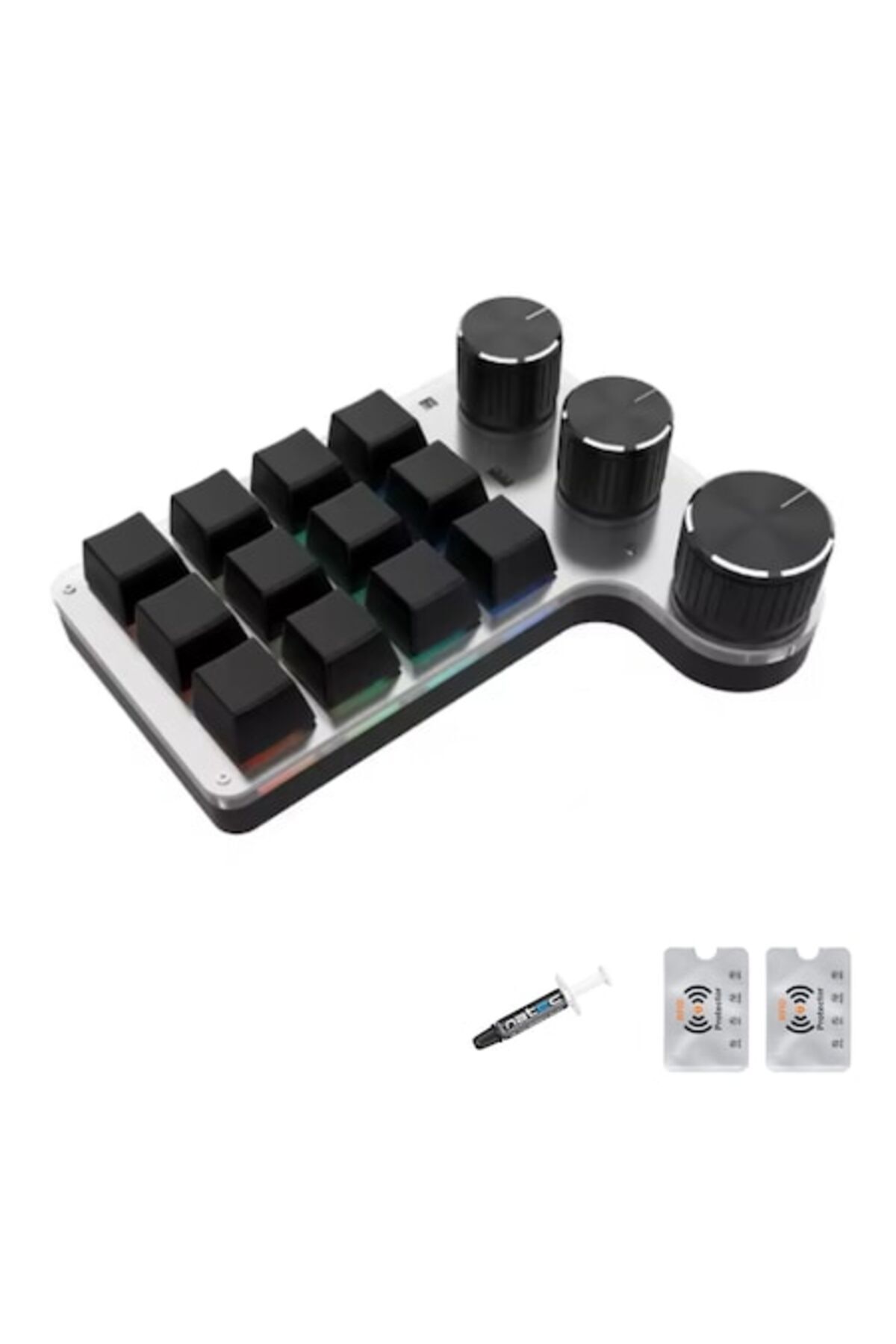 UnderShop Mini Programmable Mechanical Keyboard, 12 Keys, 3 Knobs, Custom RGB, Black features