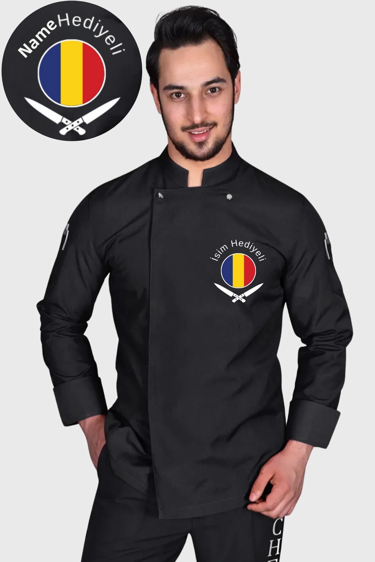 Üniformanya Romania Flag Chef Jacket features