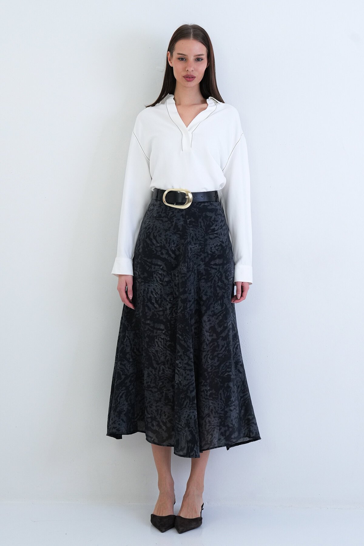 VAGGON Belted Patterned Skirt features