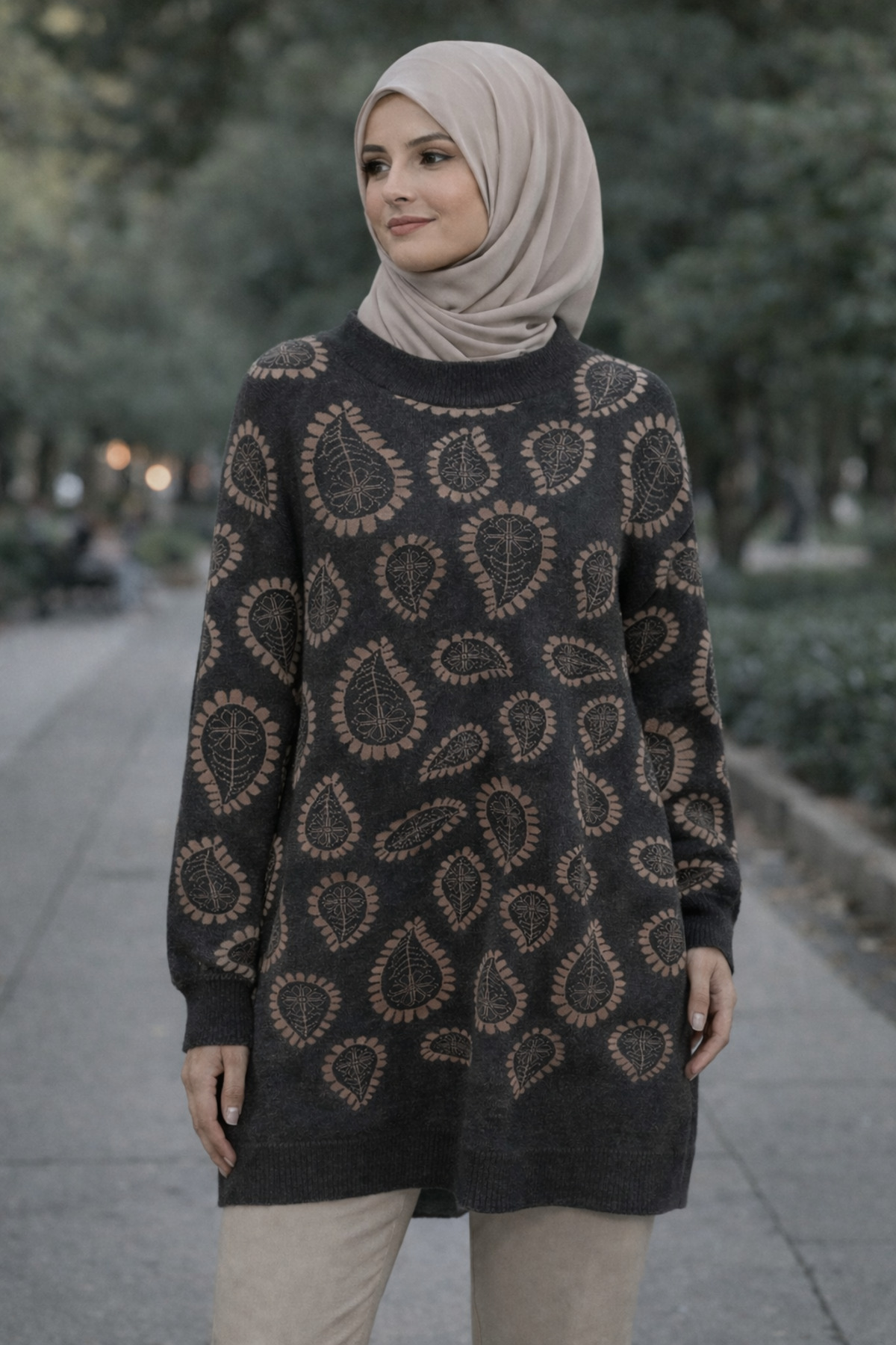 Vaniza Leaf Patterned Bearded Sweater