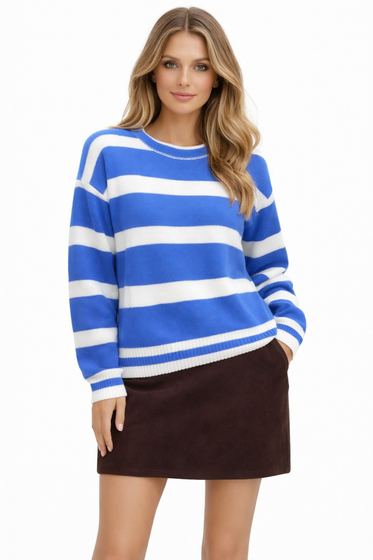 Vaniza Standard Size Basic Striped Knit Sweater features