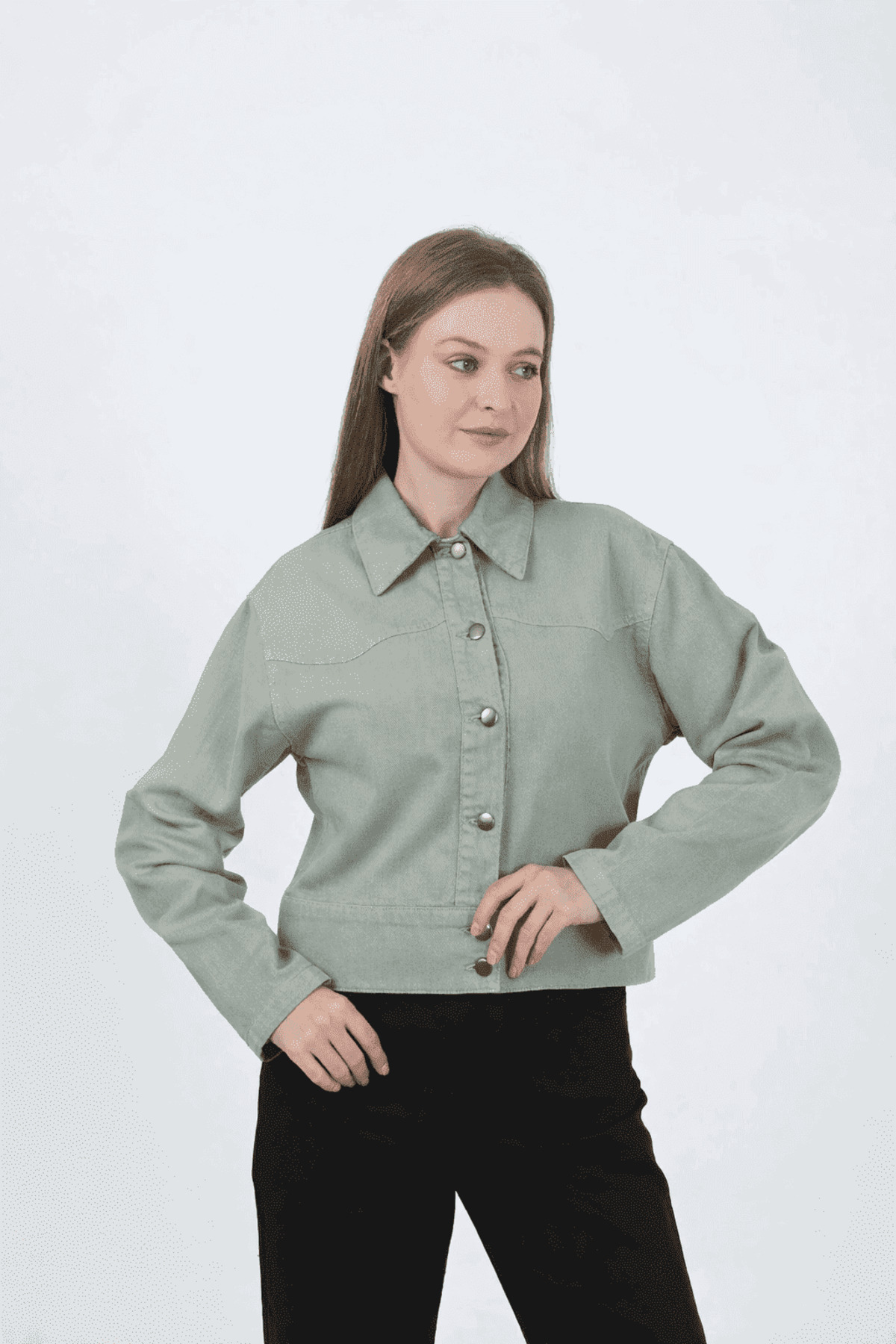 VELLICHOR Buttoned Jean Jacket - Green features