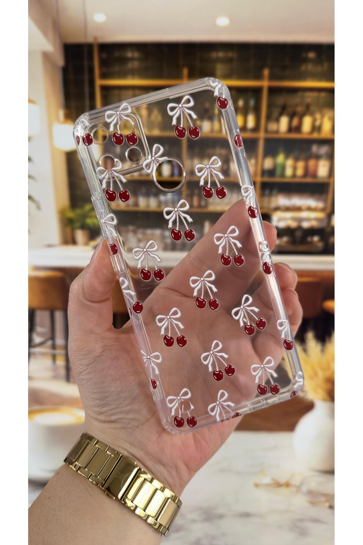 Vip Case Realme C21Y Compatible Cherry Patterned Transparent Shock-Absorbing Camera Protected Clear Case features