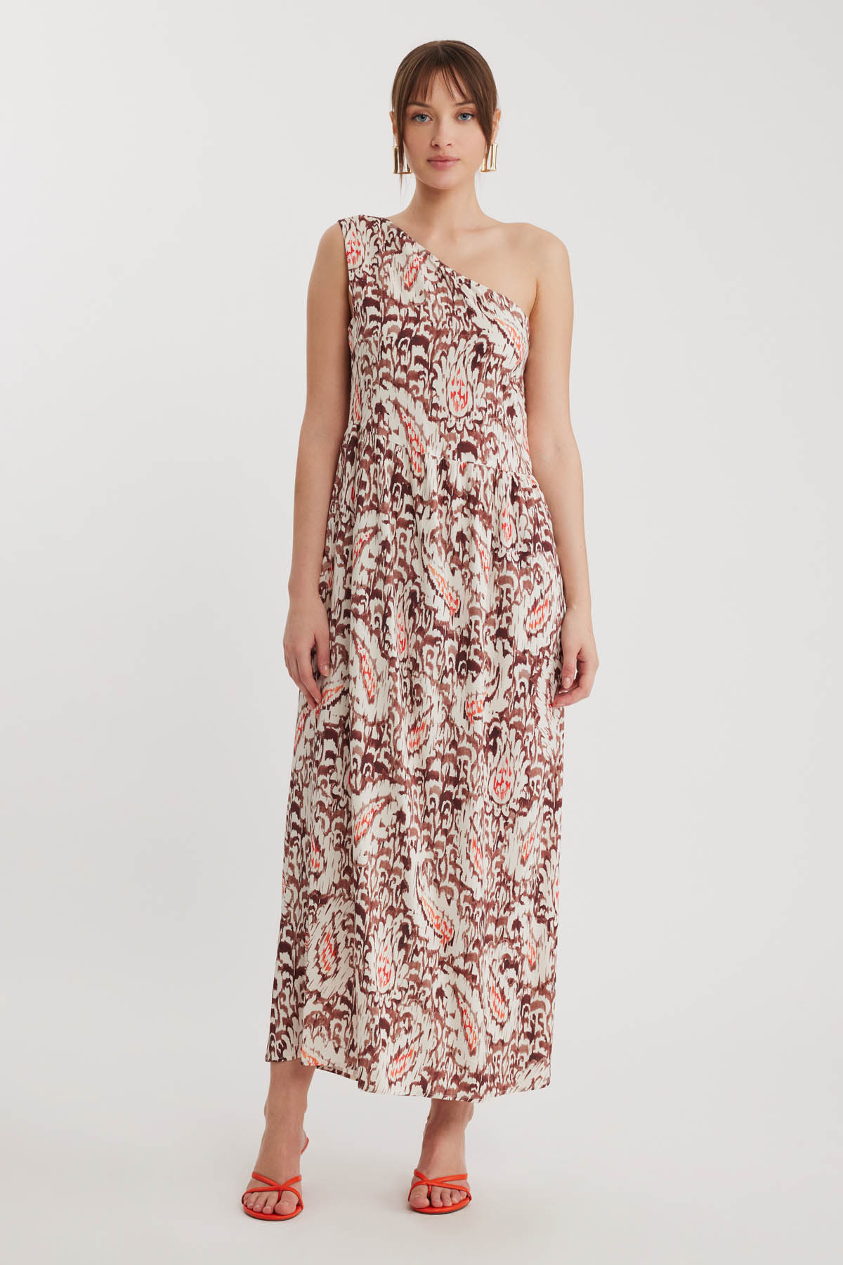 Vitrin Patterned One Shoulder Long Dress features