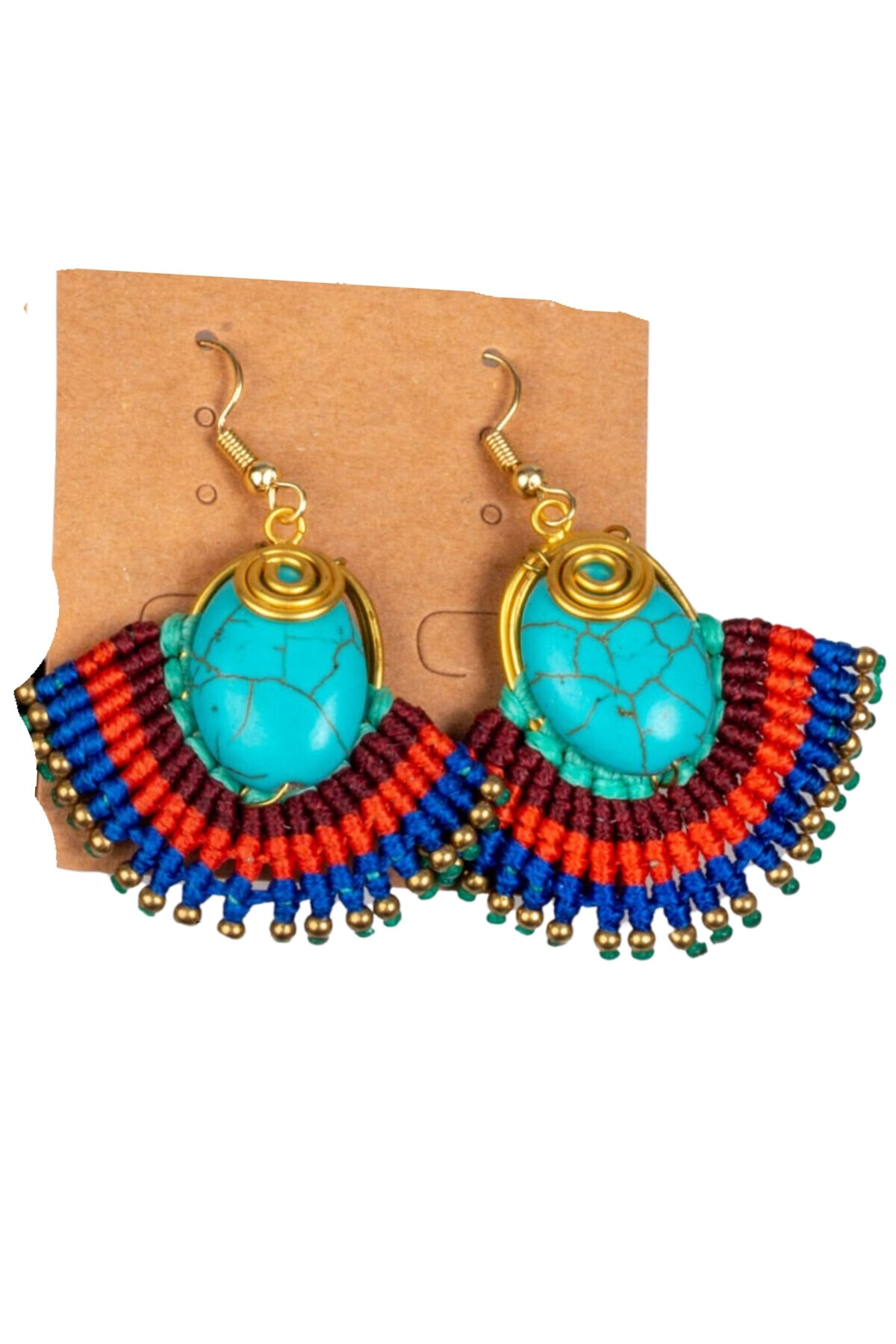 Waves And Pebbles Turquoise Macrame Earrings features