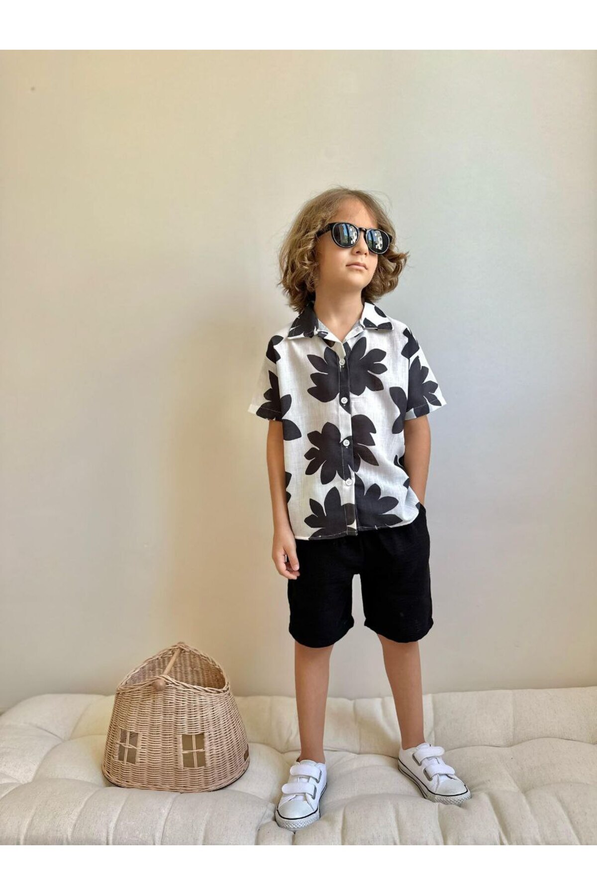 WİKİBOOM Boy's Leaf Patterned Top and Bottom Set