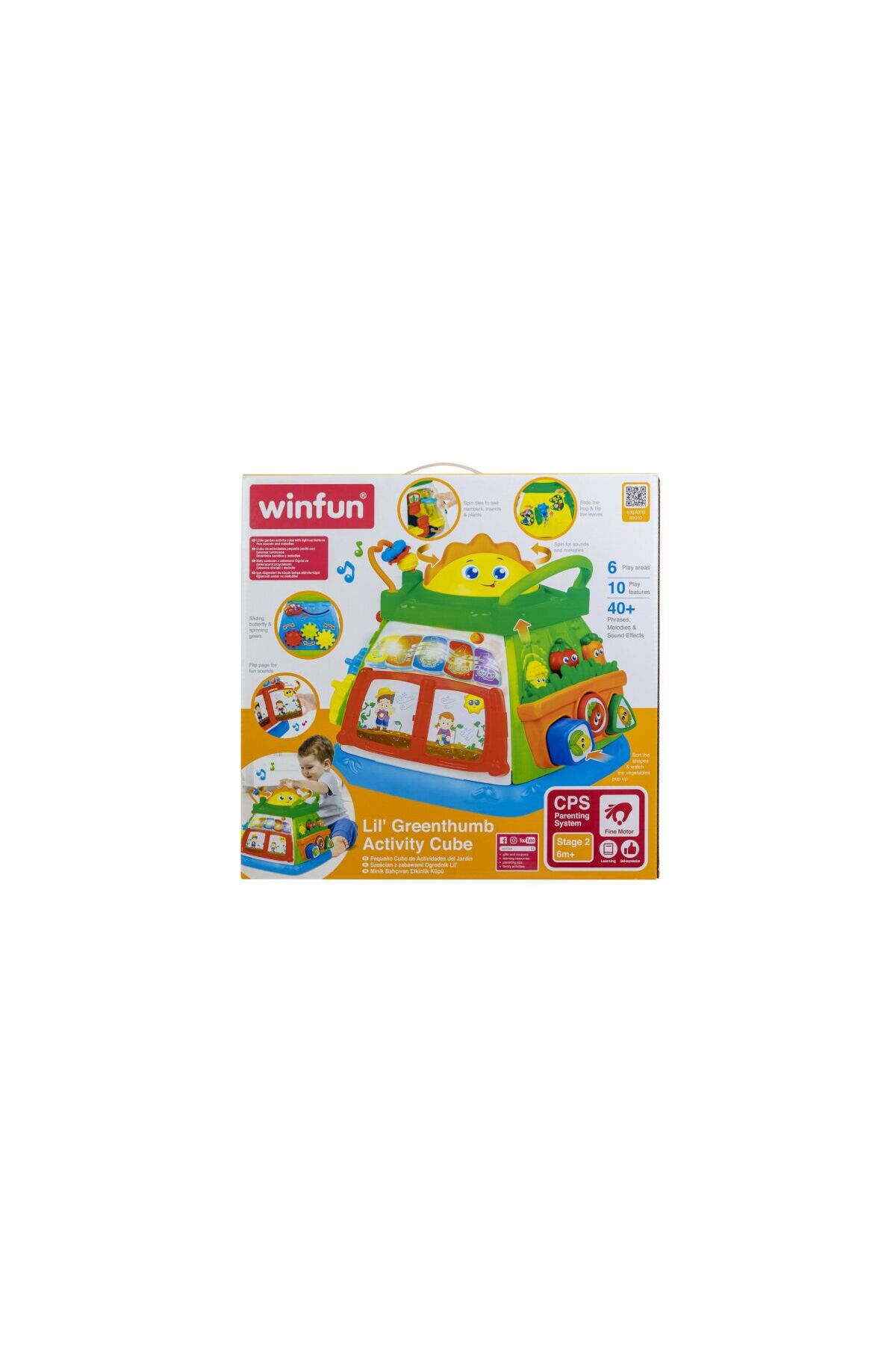 6 play panels, light-up buttons, sound effects, melodies