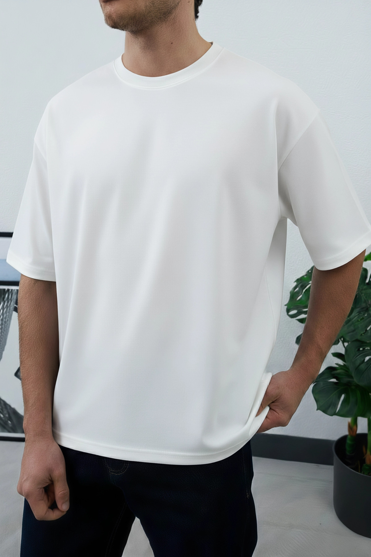 Wonraces Men's Oversize Basic Crew Neck 2 Thread Cotton T-Shirt