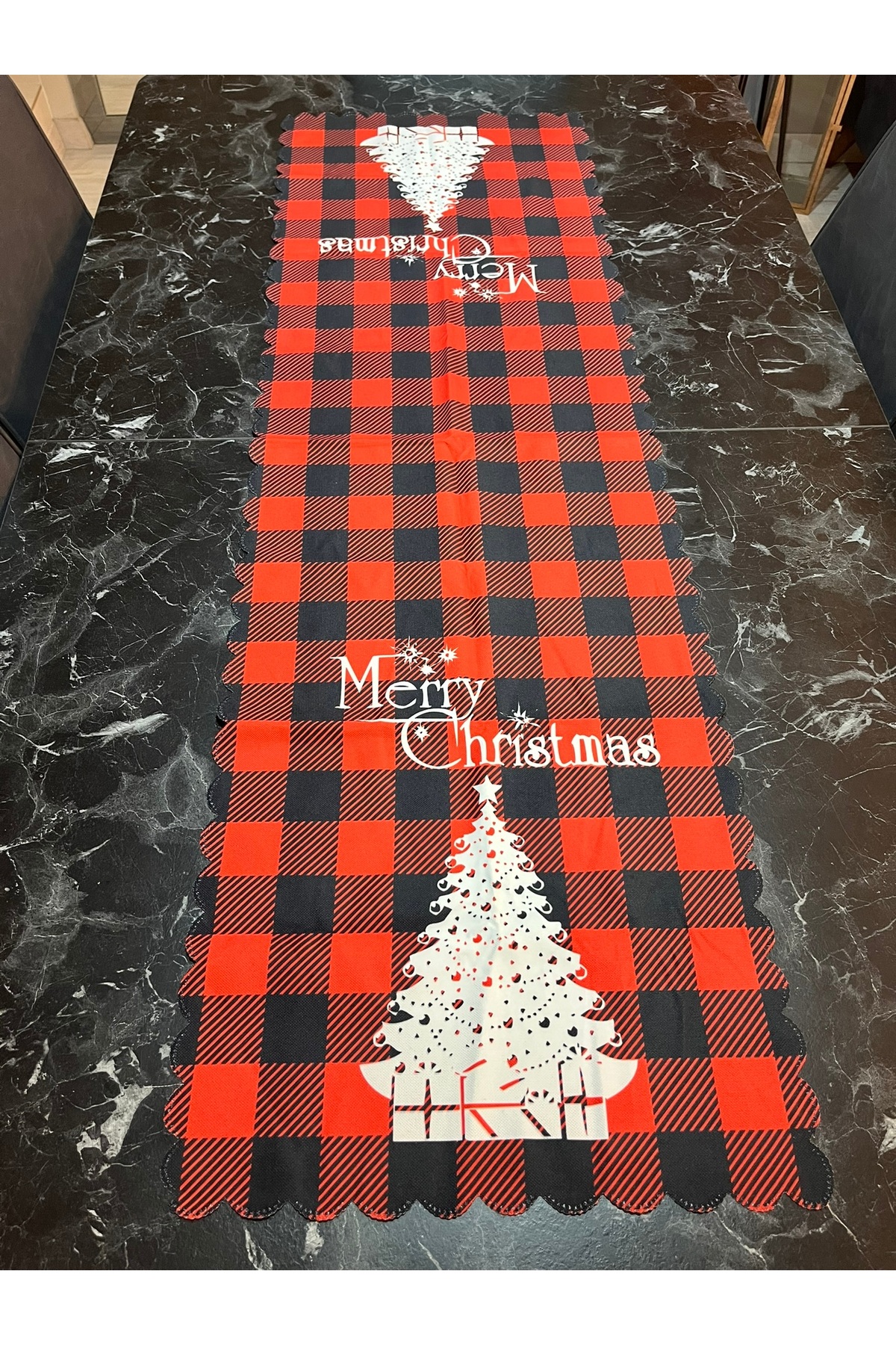Yıldız Accessory Christmas Checkered Pine Tree Runner