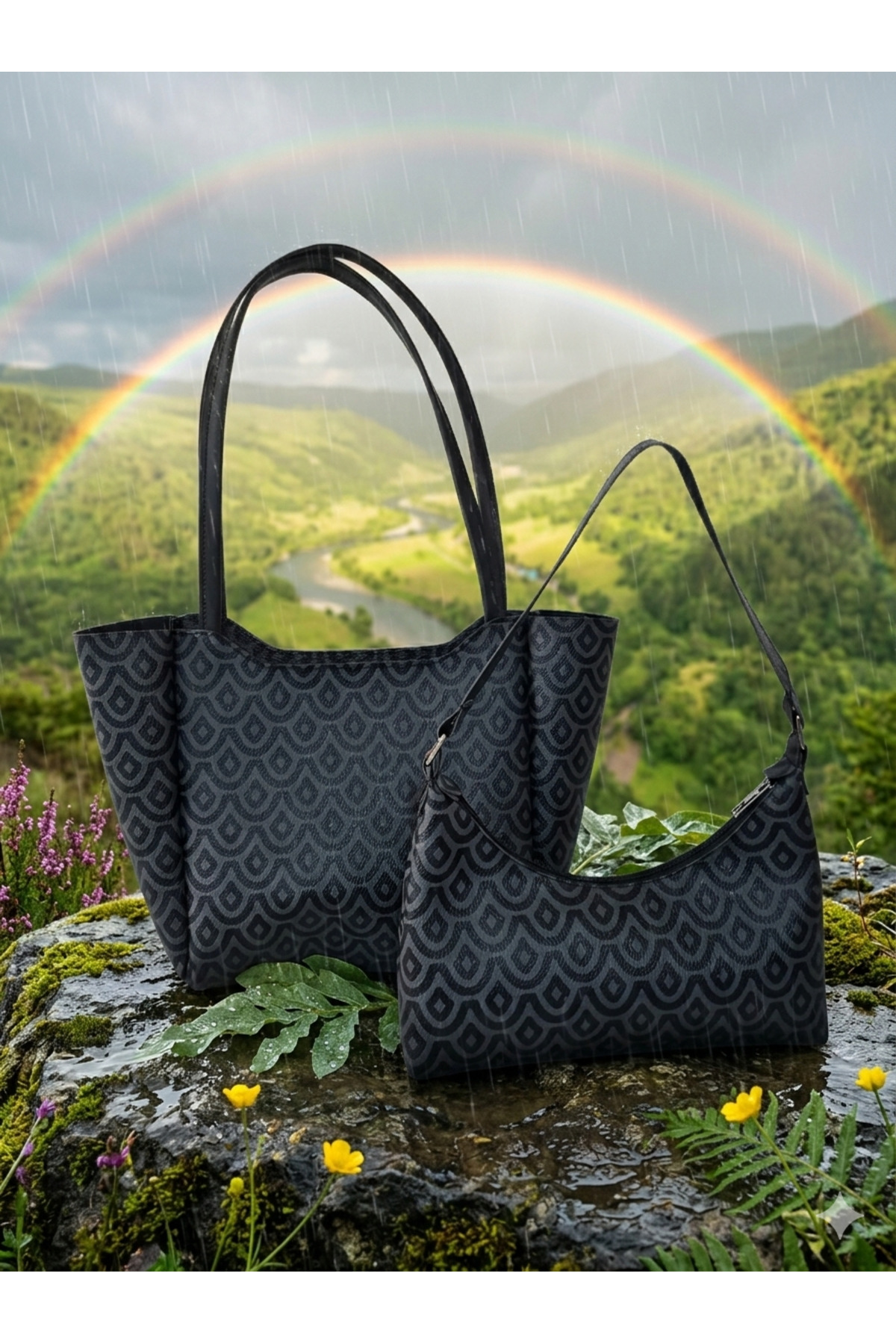 YMZBAG Damla Patterned Double C Bag Pack features
