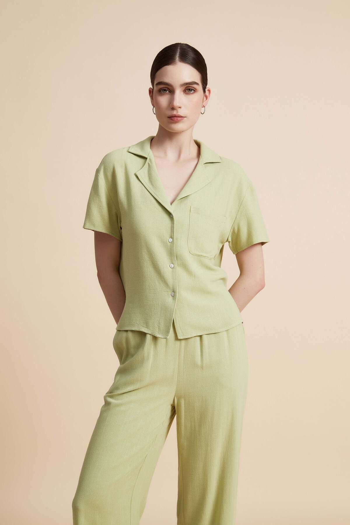 Yola Solid Buttoned Half-Sleeve Top features