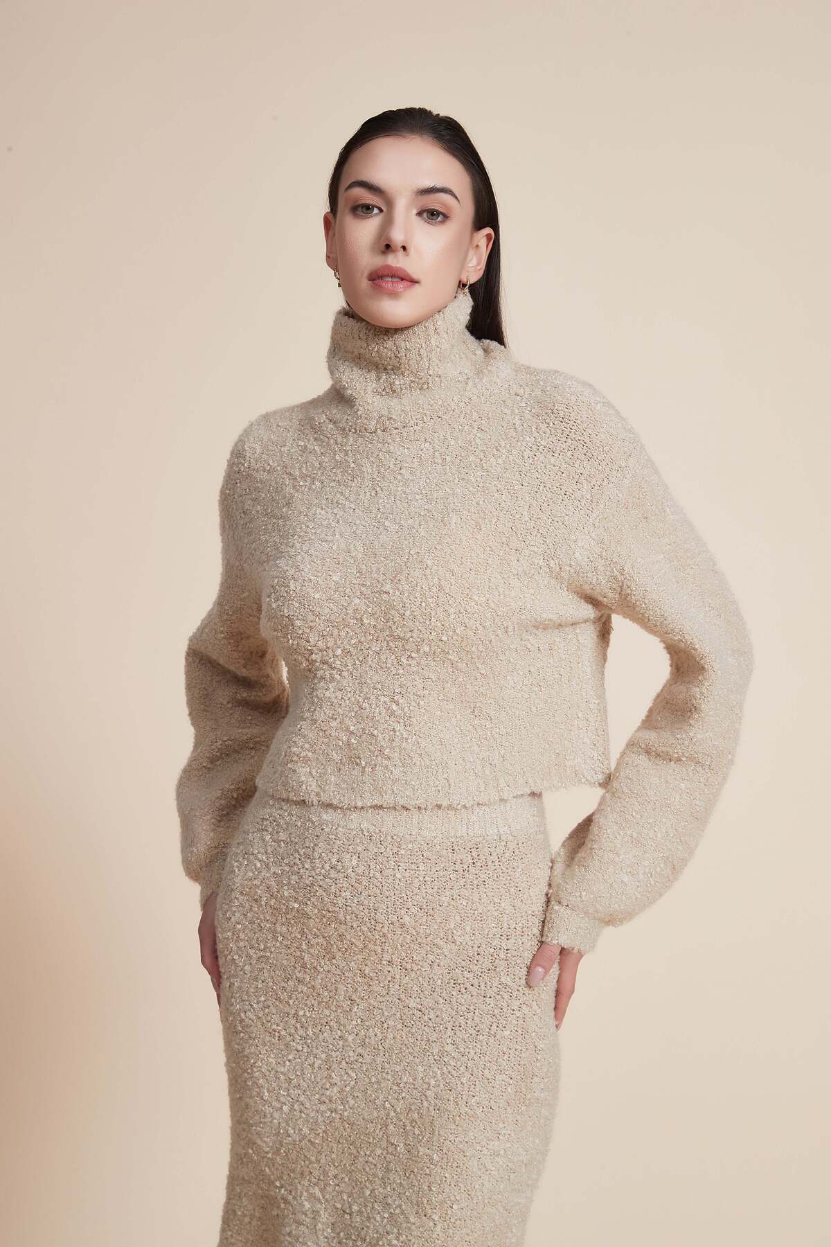 Yola Solid Turtleneck Long-Sleeve Top features